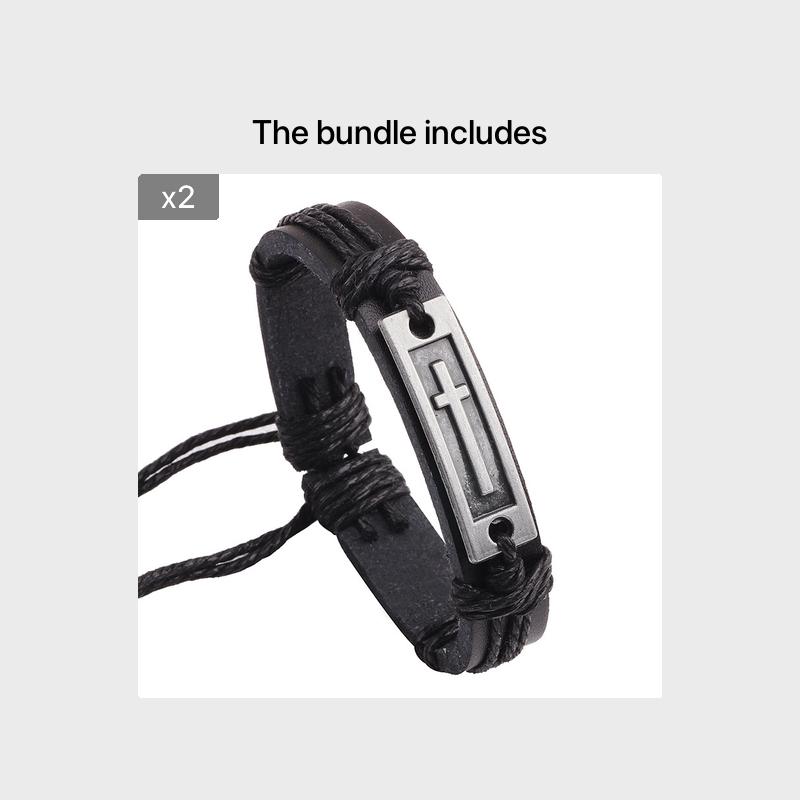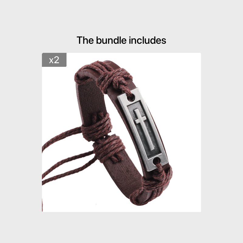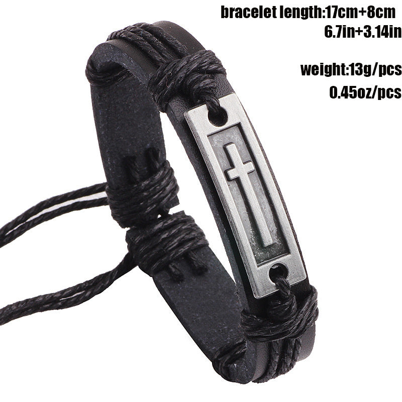 This men's bracelet features a cross design and is made of high-quality artificial leather, giving it a vintage look. It is adjustable to fit various wrist sizes.