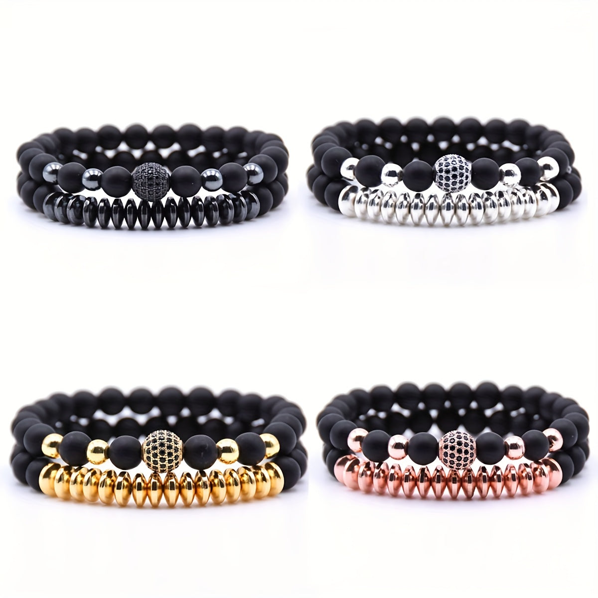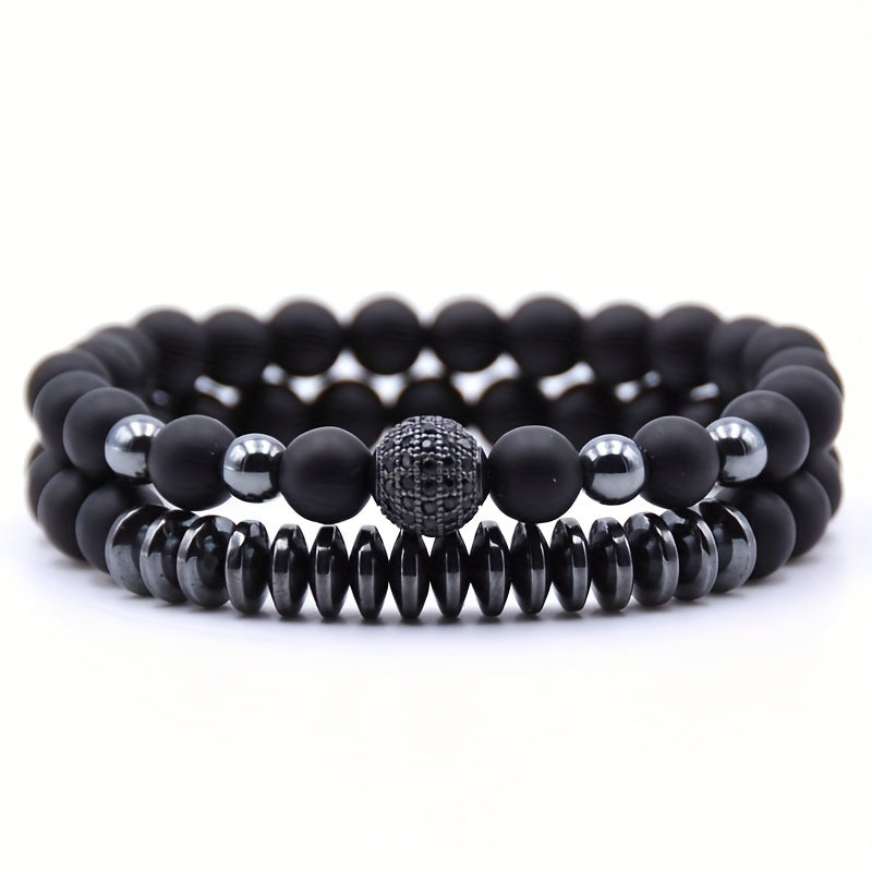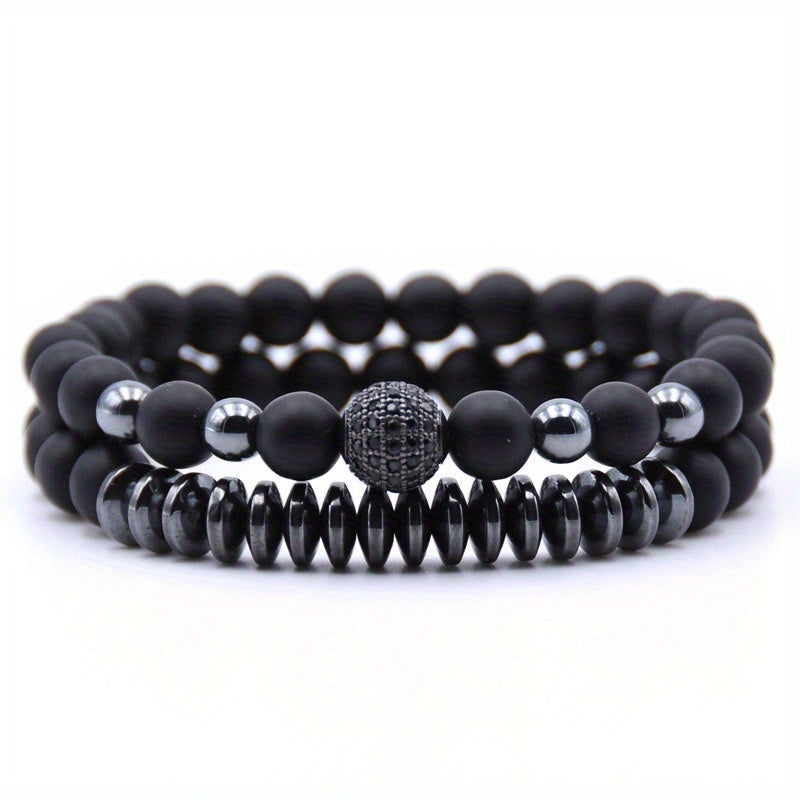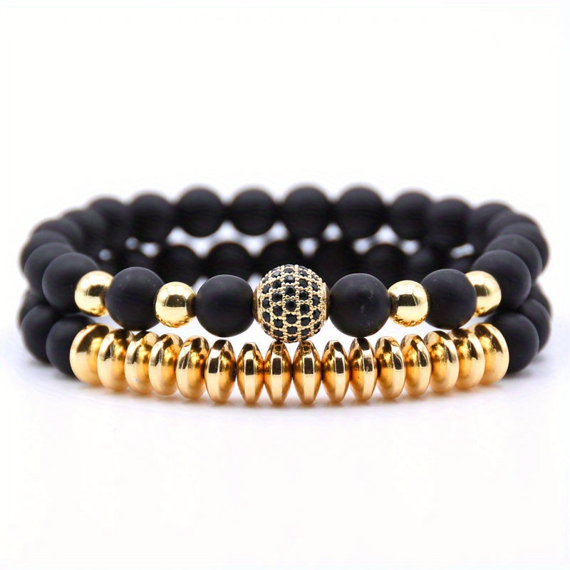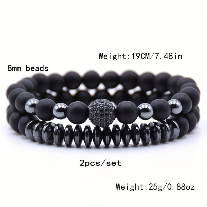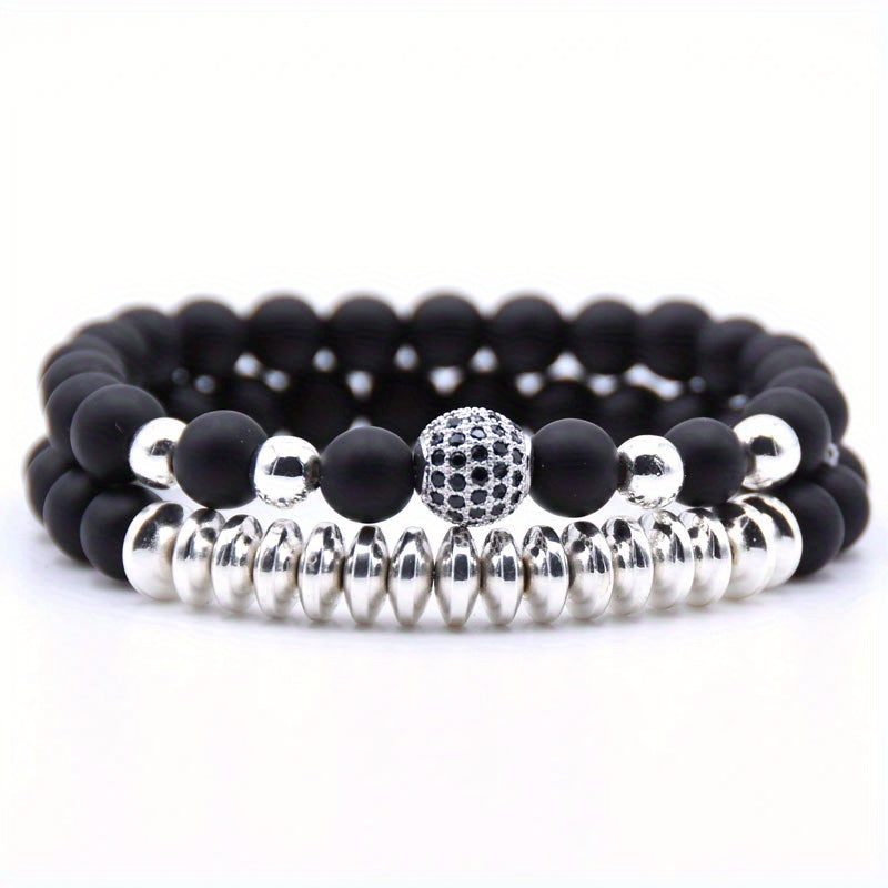 This stylish bracelet set includes a frosted stone bracelet and a micro zircon bracelet, perfect for couples.
