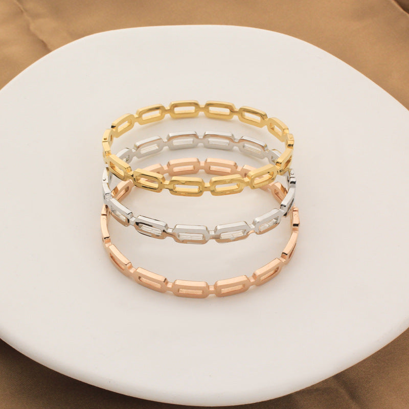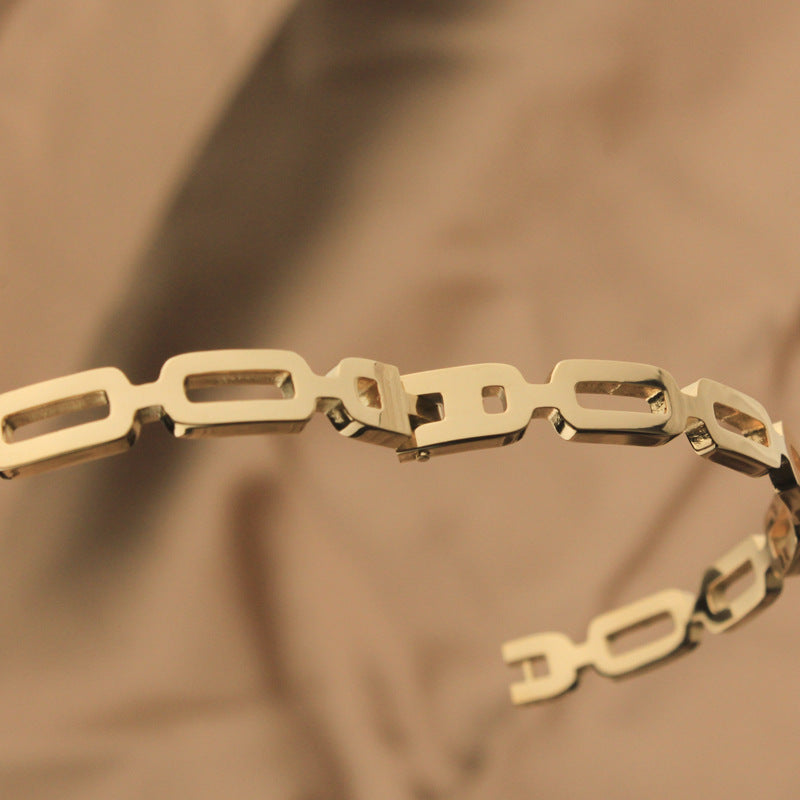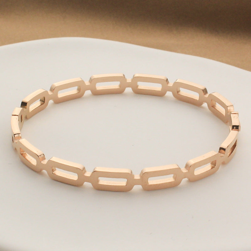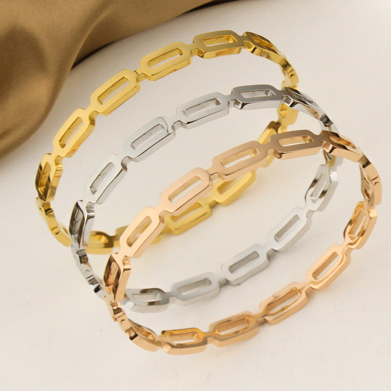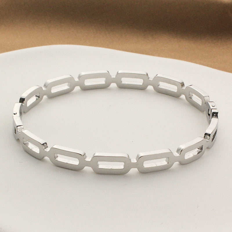 This stylish stainless steel bracelet is perfect for men who appreciate modern accessories. The hollow design adds a touch of sophistication to any outfit.