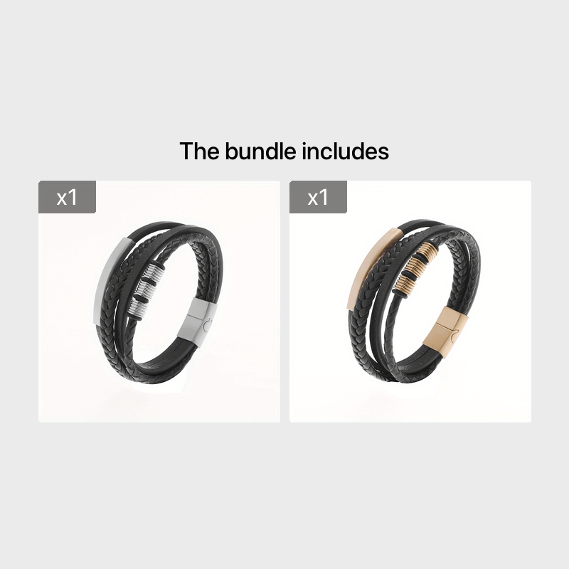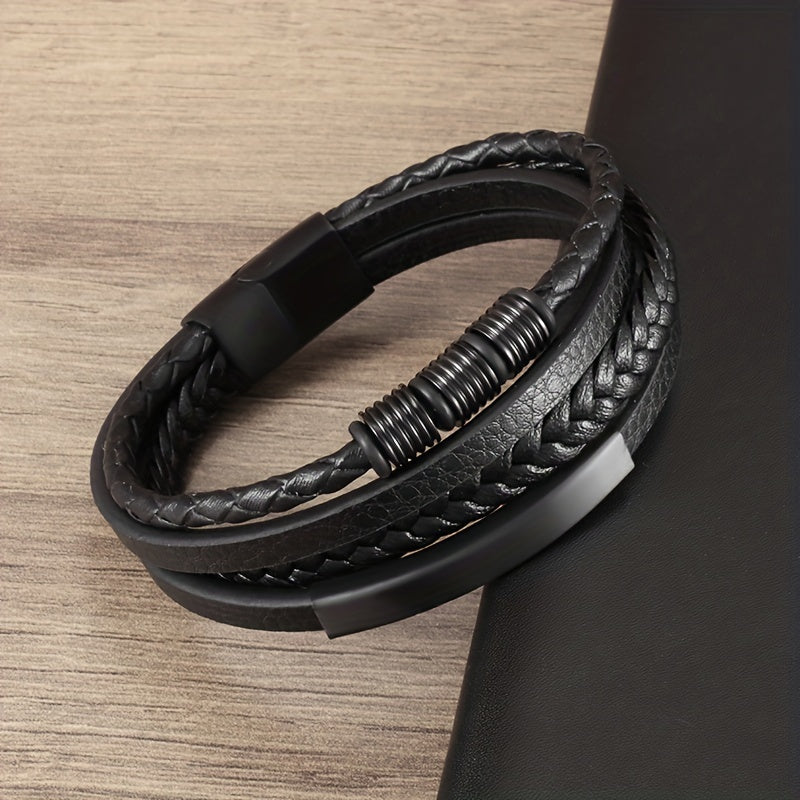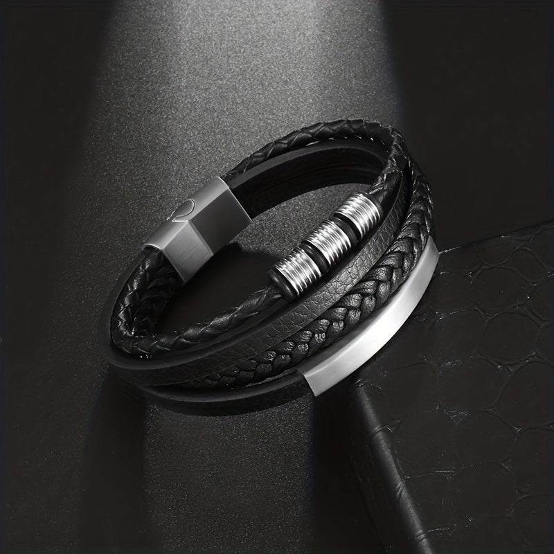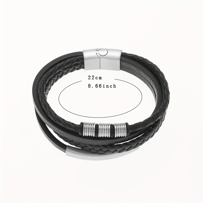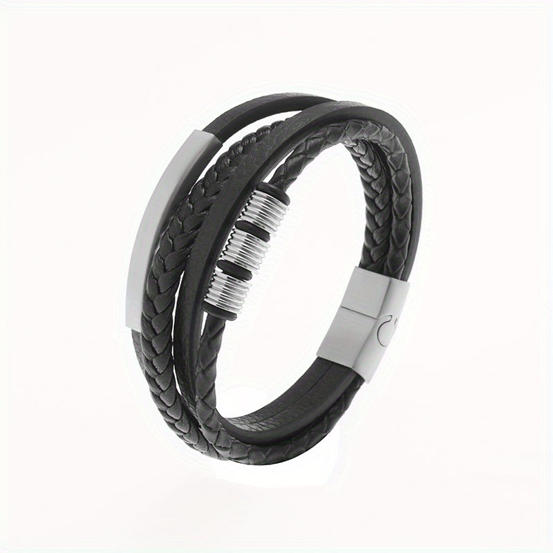 This men's bracelet features a layered woven design with a magnetic buckle closure, perfect for casual wear or party outfits.