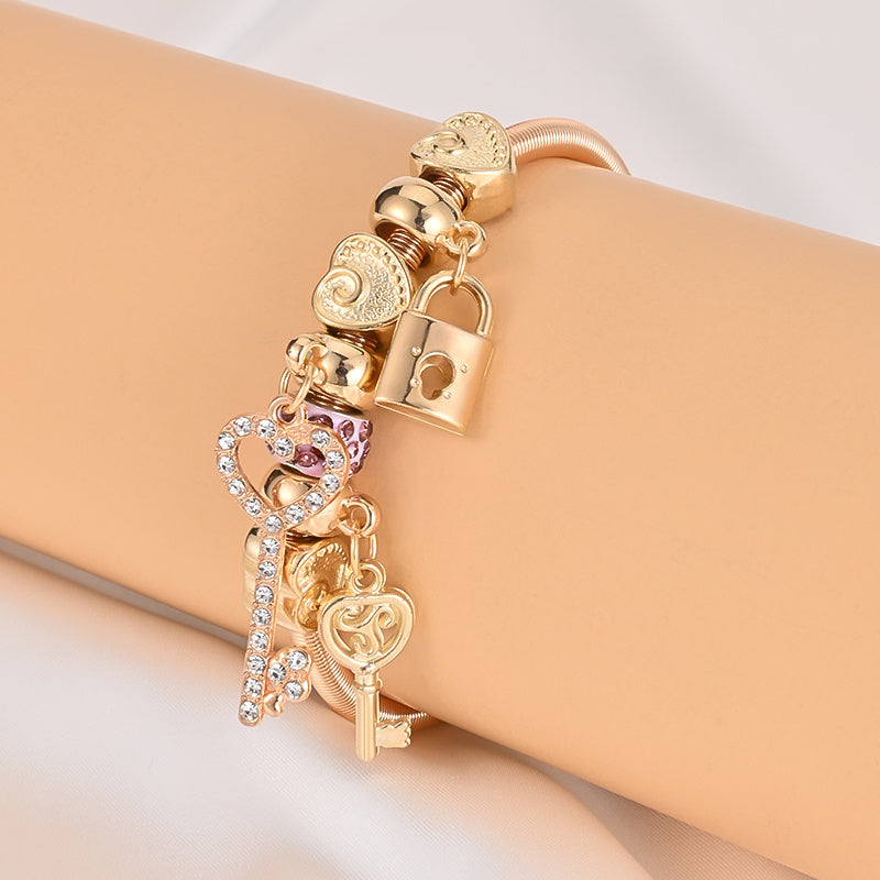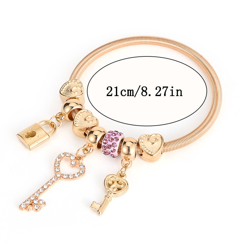 This stylish bracelet features a golden key lock pendant adorned with rhinestones. Perfect as a gift for any occasion.