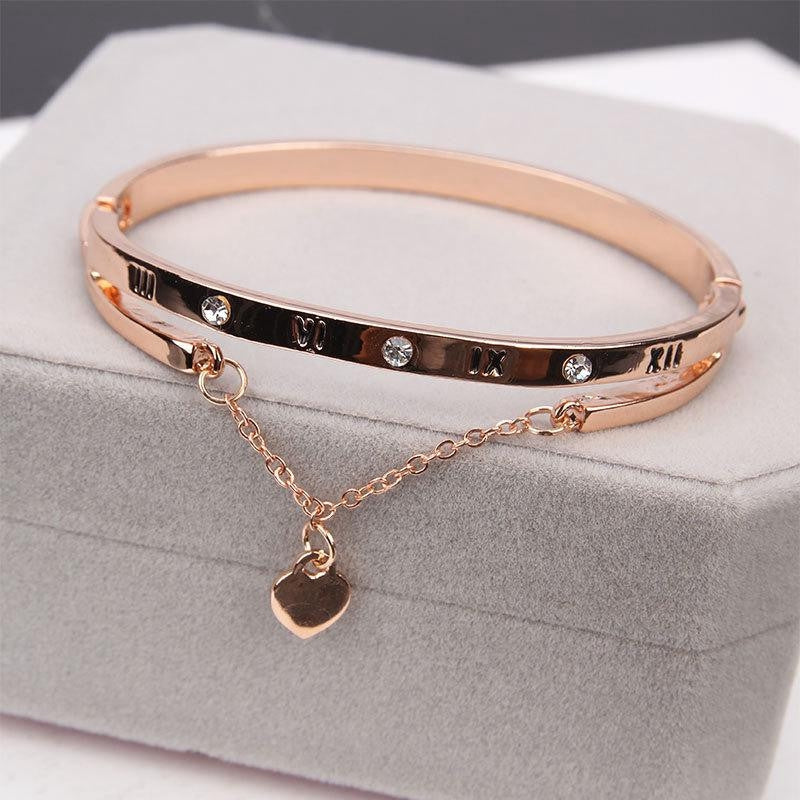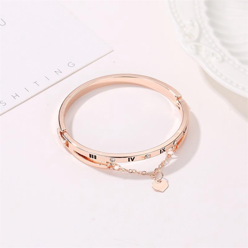 Add a touch of style with this stainless steel bracelet featuring Rome numeral hearts. Perfect for everyday wear or special occasions.