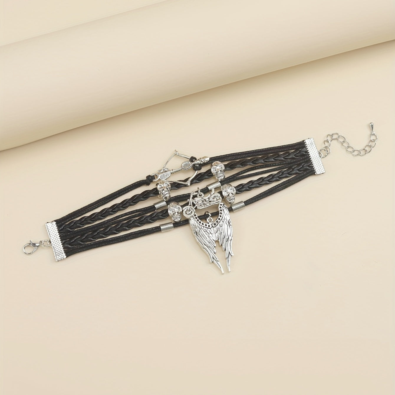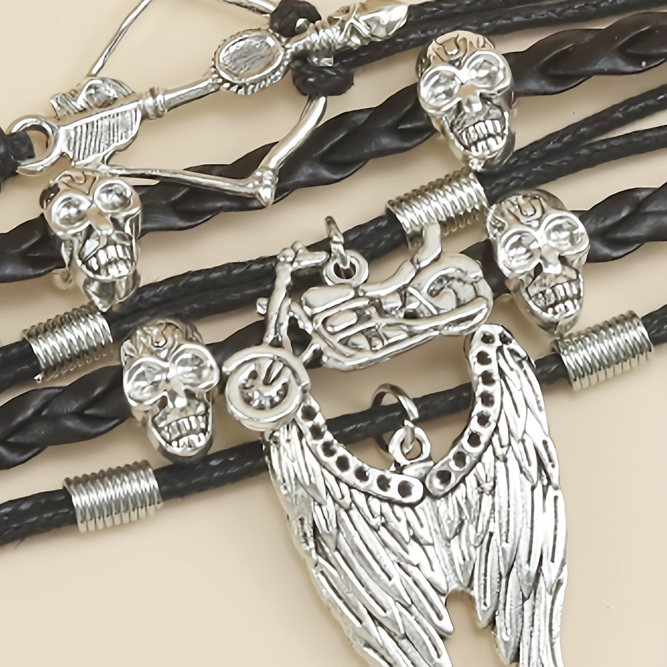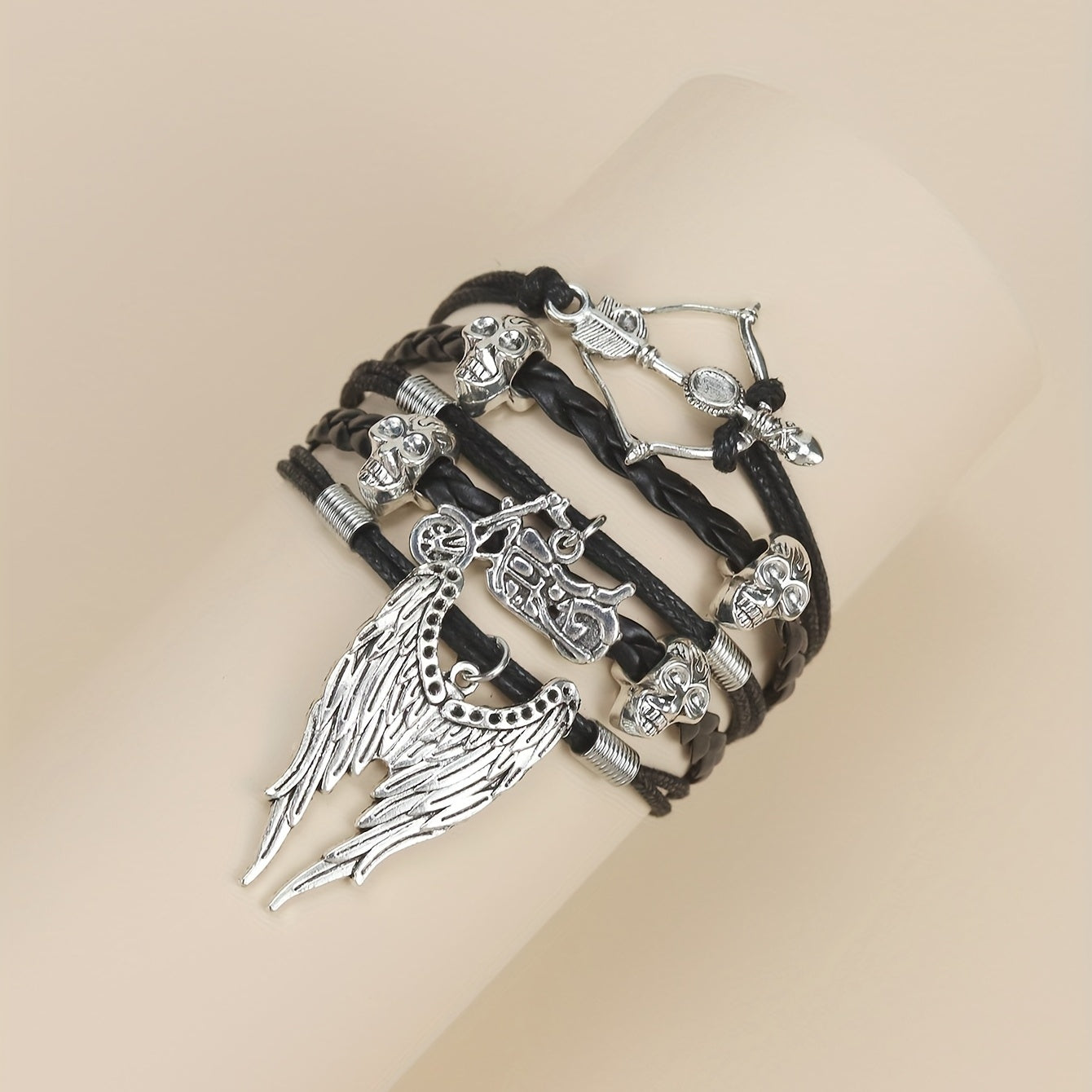 Men's Skeleton Motorcycle Angel Wings Bracelet Hip hop Braided Dark Fear Wrap
