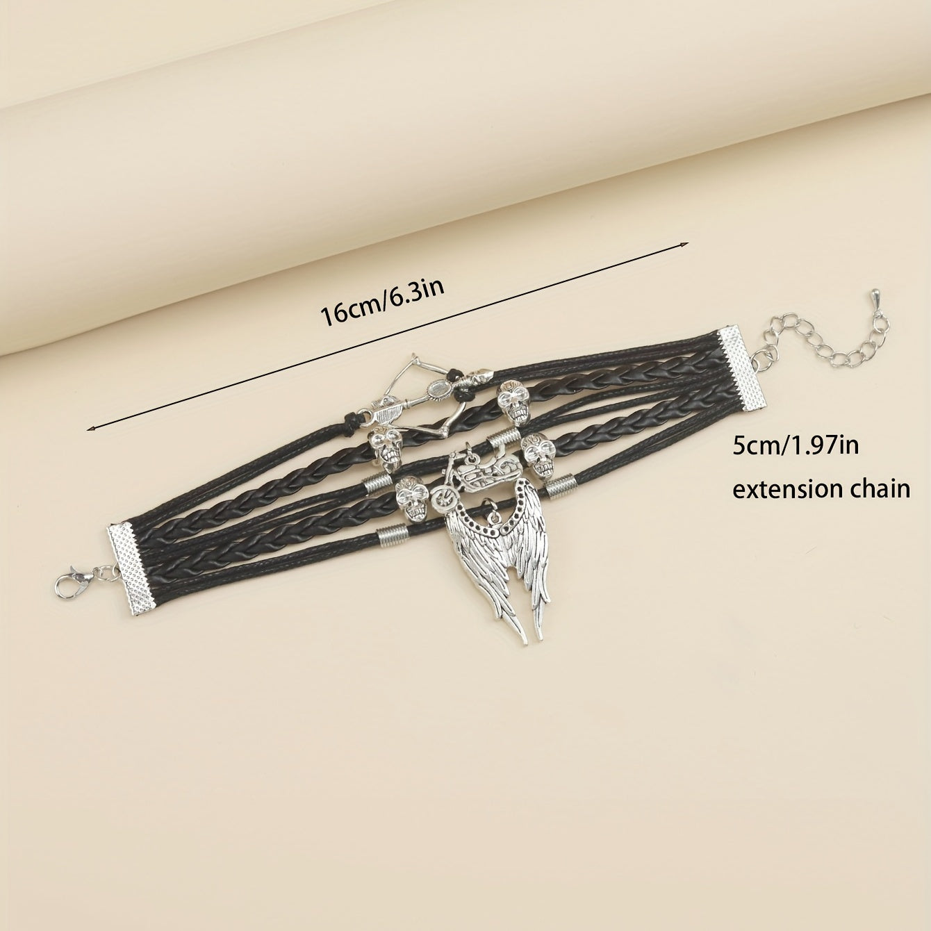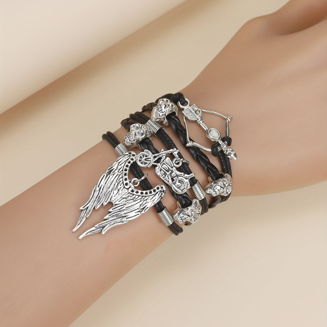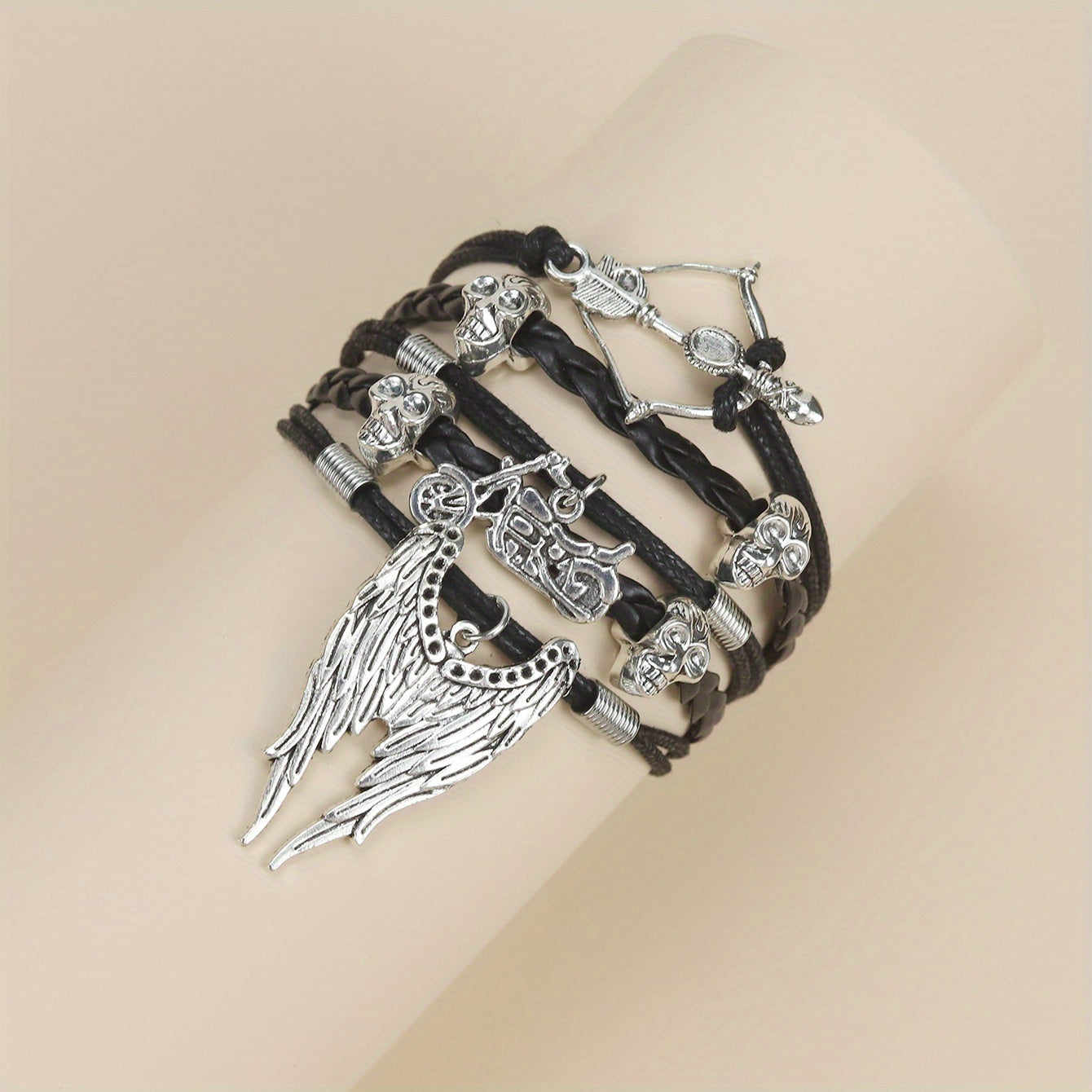 Men's Skeleton Motorcycle Angel Wings Bracelet Hip hop Braided Dark Fear Wrap