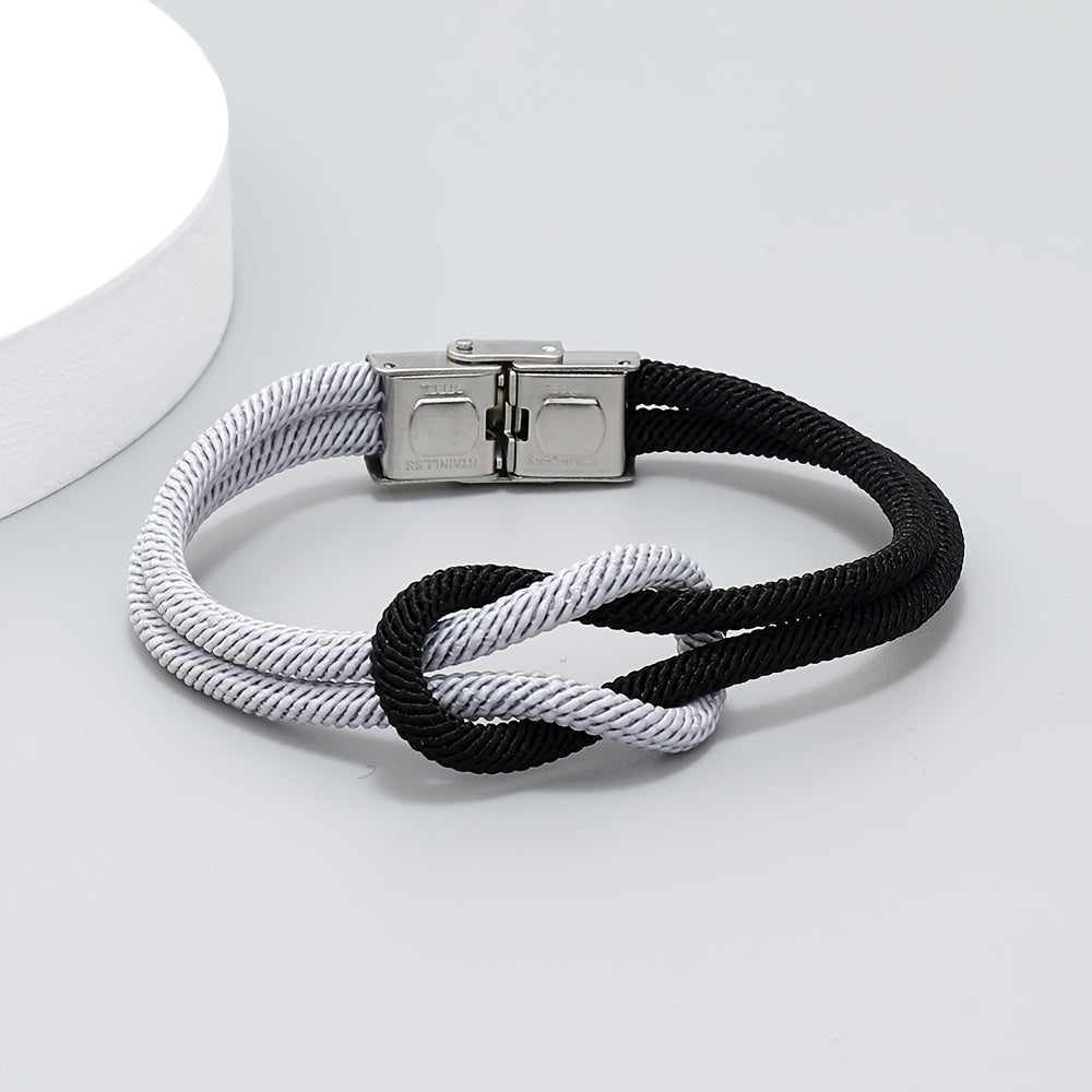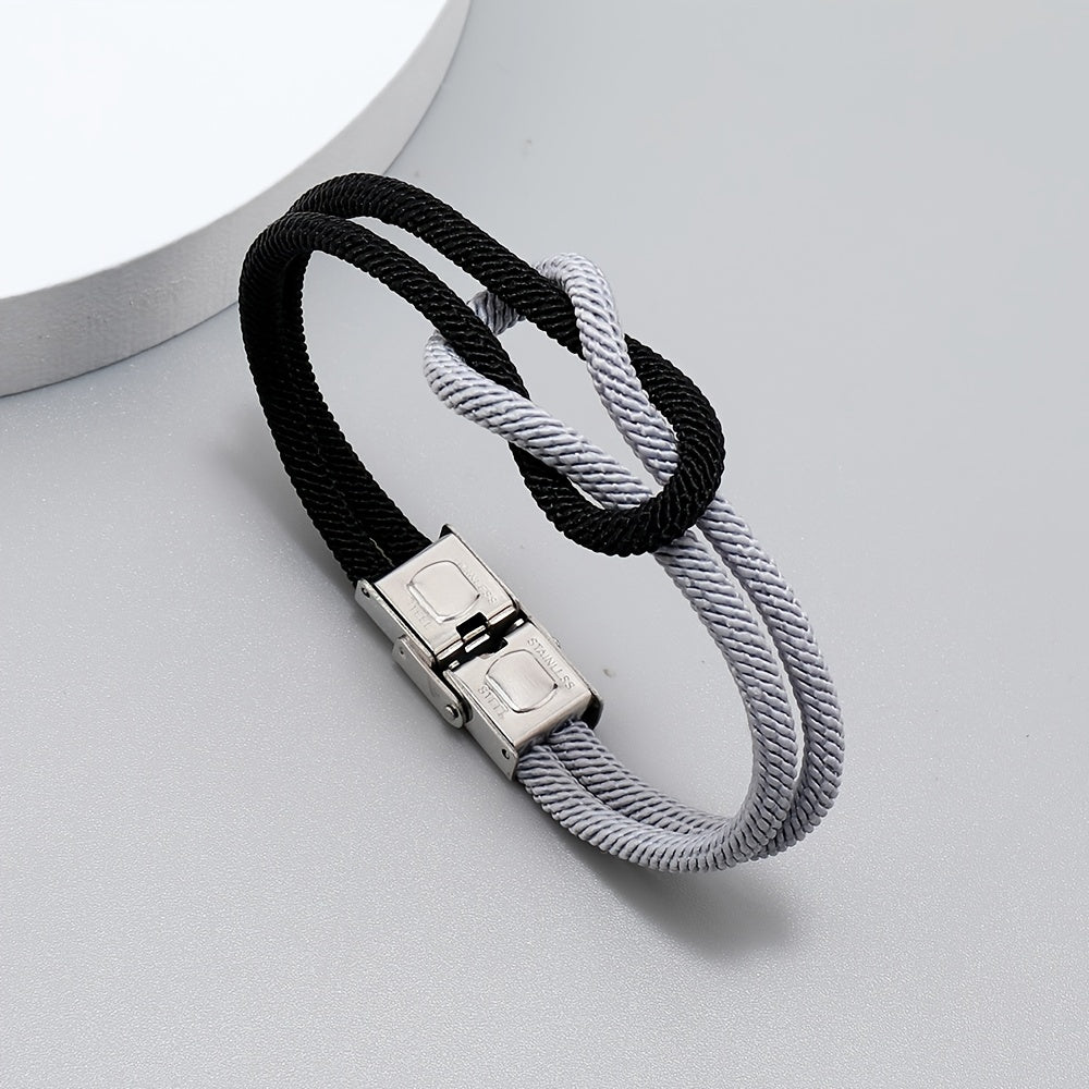 This stainless steel bracelet features a stylish braided design, perfect for daily wear or special occasions.