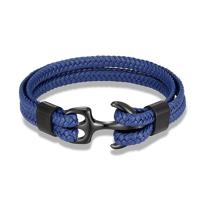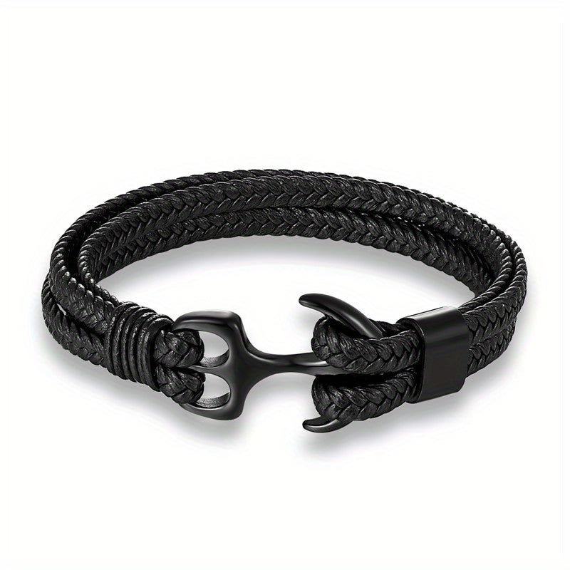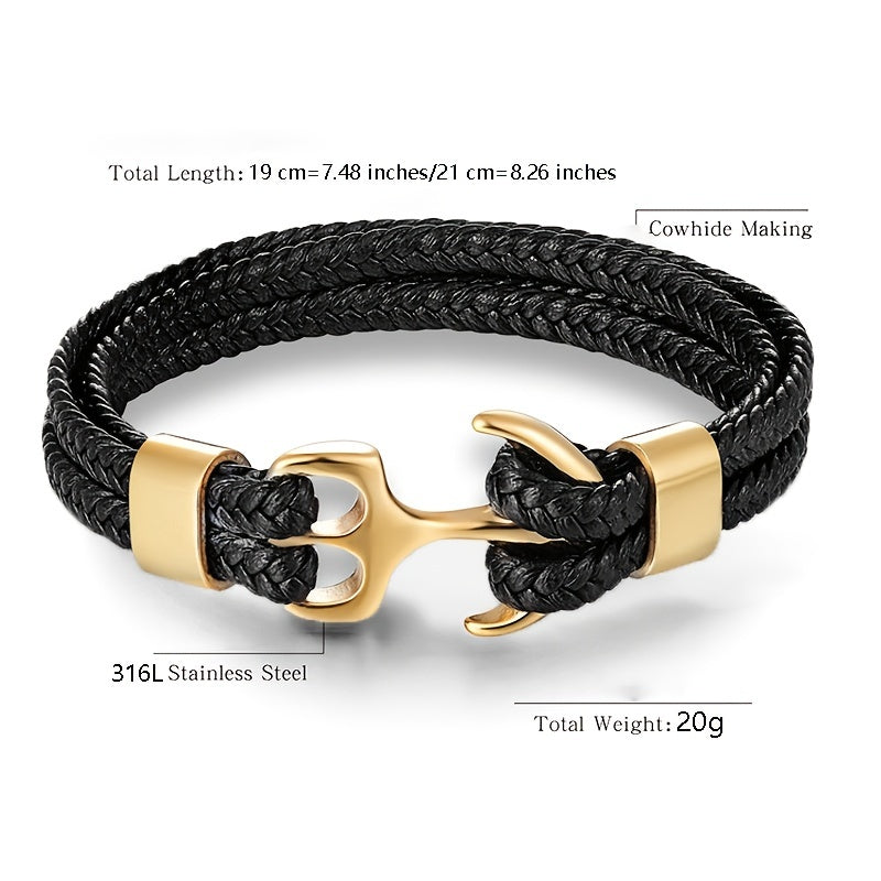 This men's bracelet features a stylish design with a boat anchor symbol and braided cowhide leather.
