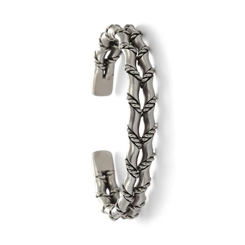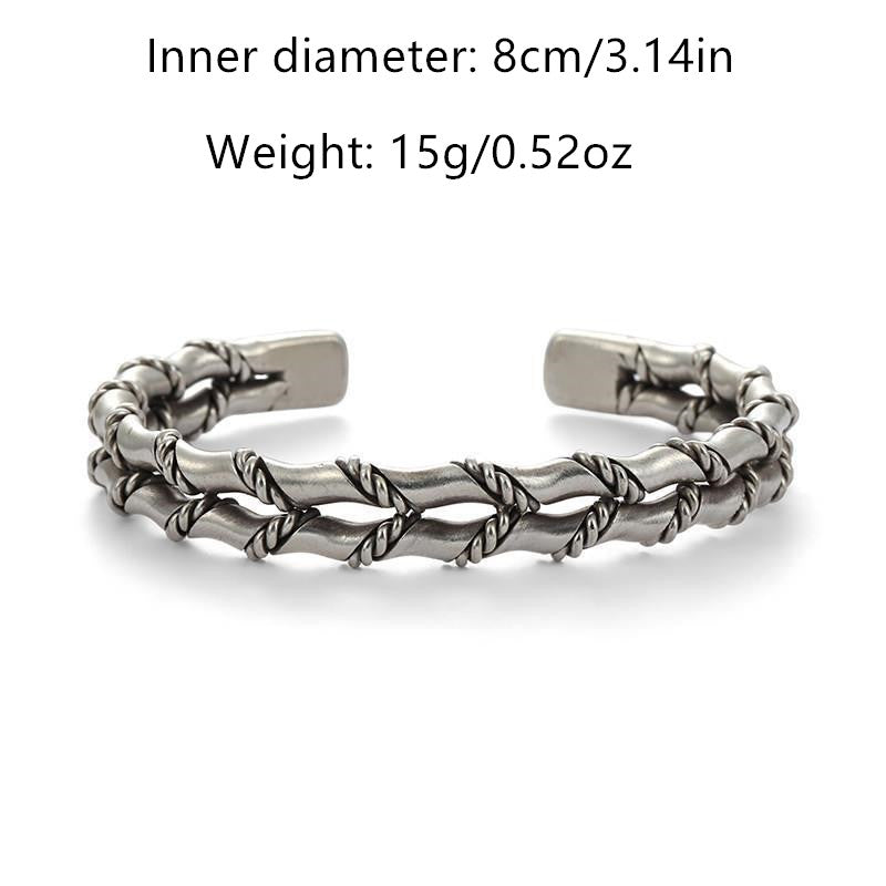 Embrace a unique style with this woven bamboo bracelet. It features a double layer design for a trendy punk look.