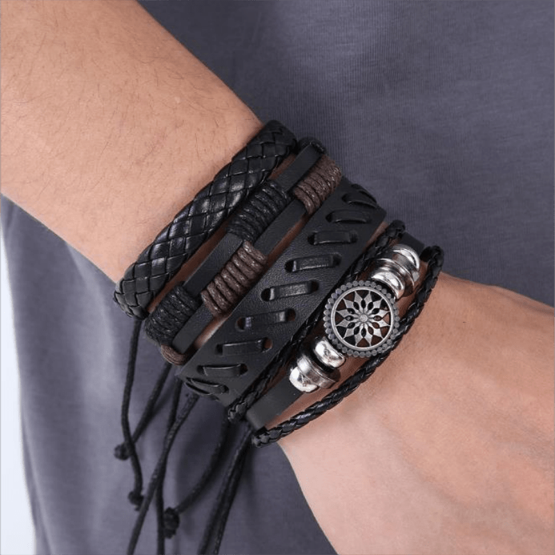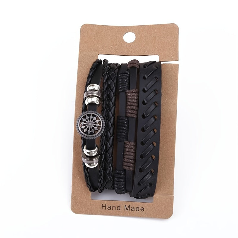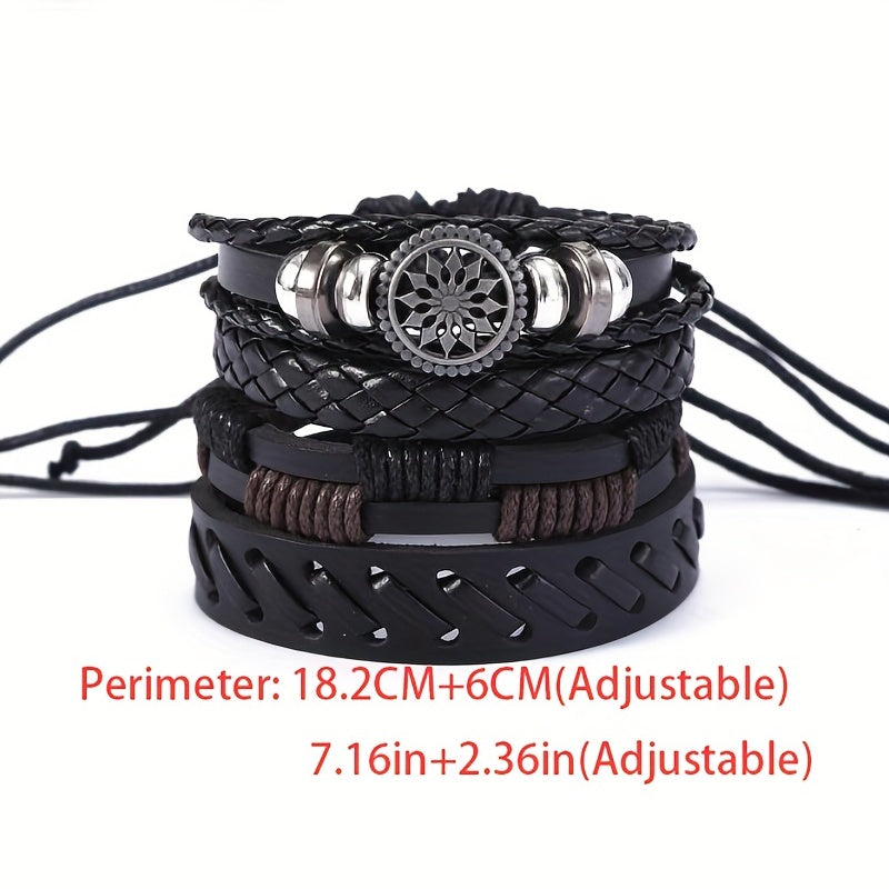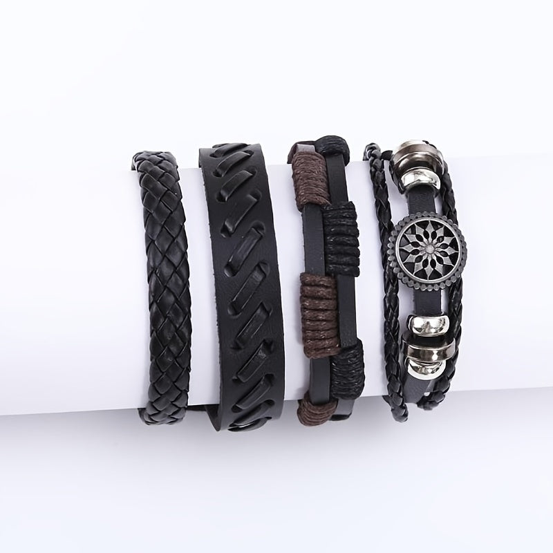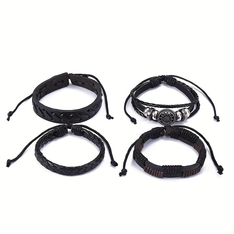 Get this stylish men's bracelet made of woven faux leather layers. The bracelet is adjustable and can be customized for a unique look.