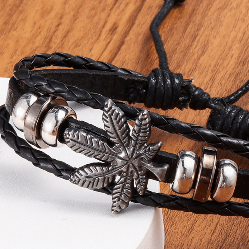 Add a touch of vintage style to your look with this handcrafted leather bracelet. The intricate woven design adds an extra layer of detail to your outfit.