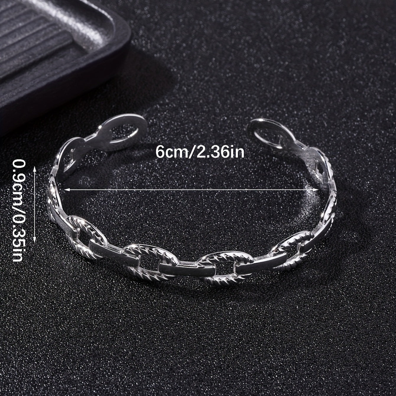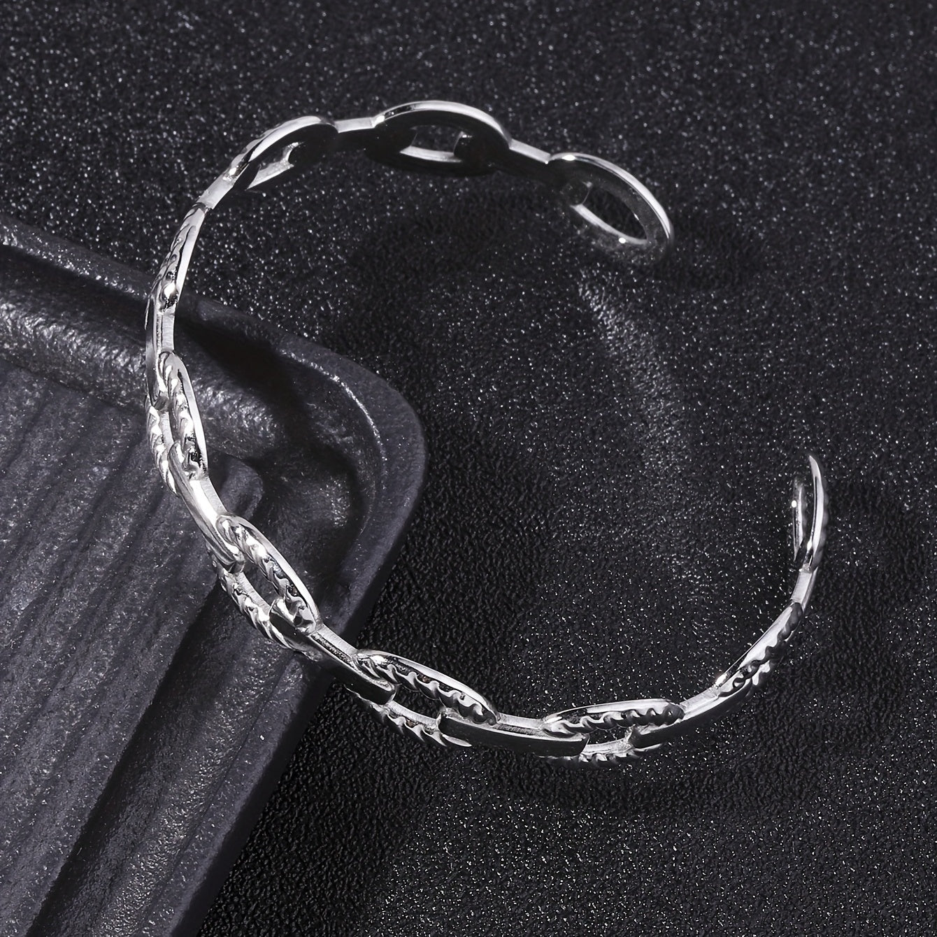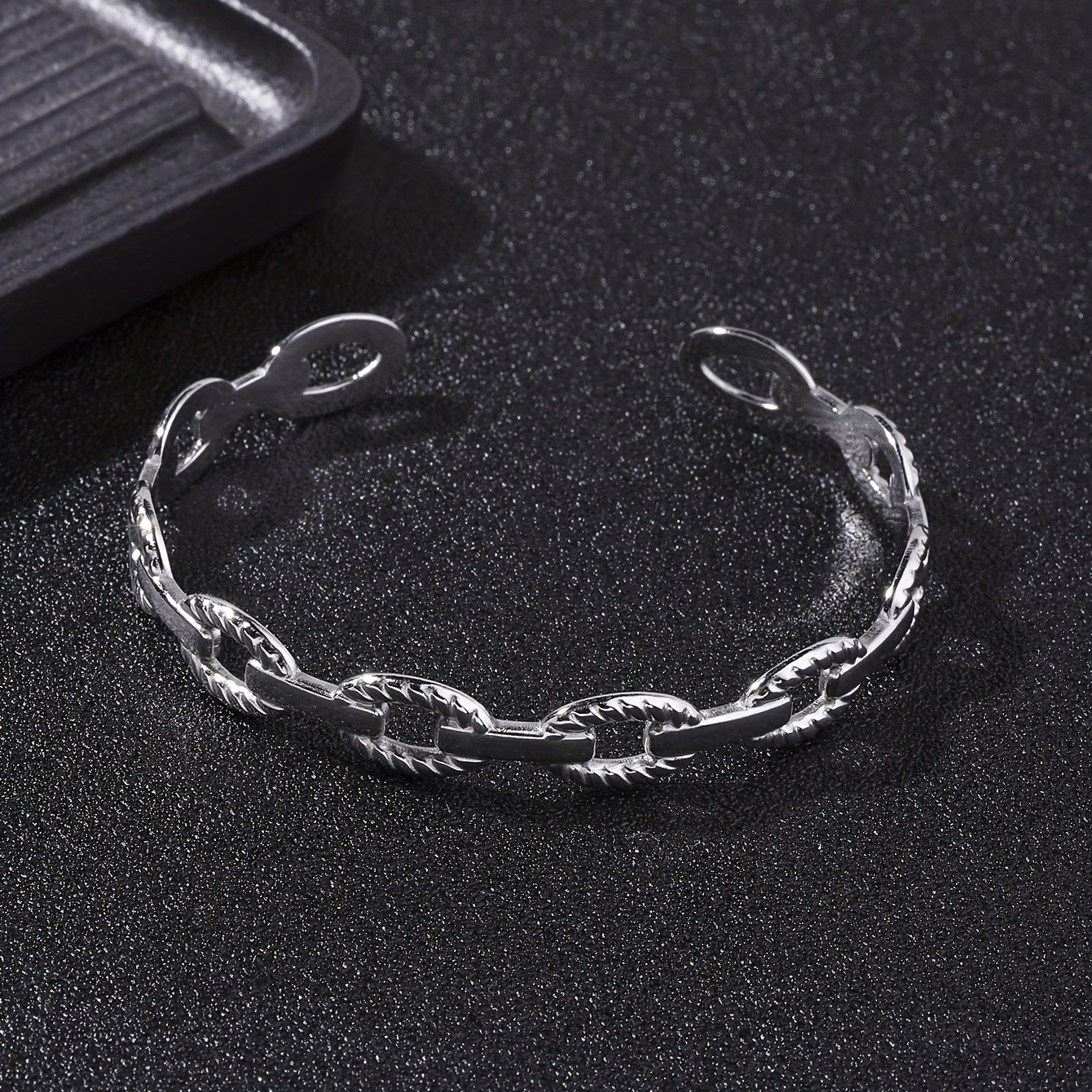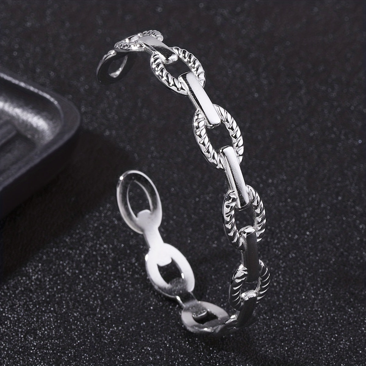This adjustable stainless steel bangle features a classic shape with a vintage chain design, perfect for men's fashion.
