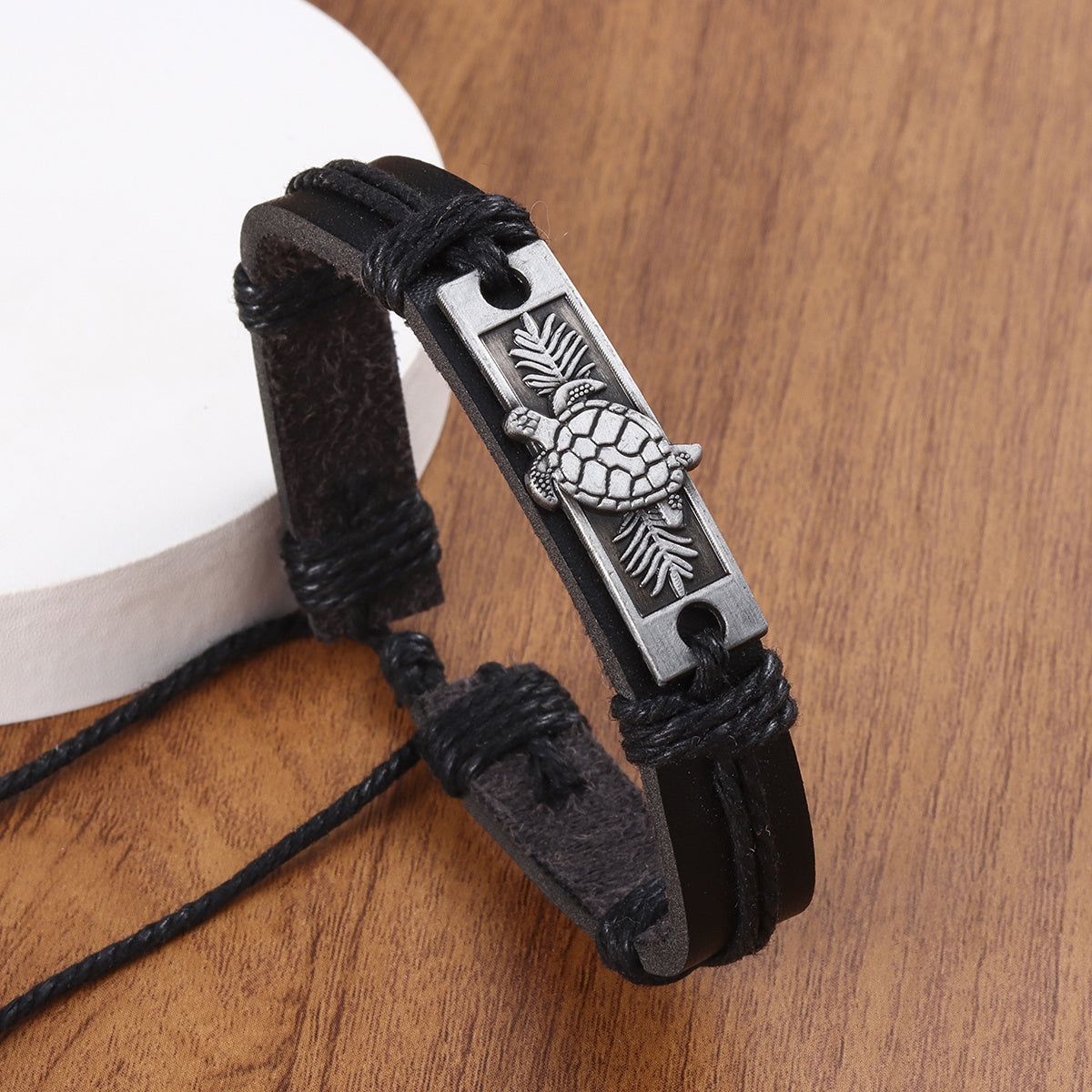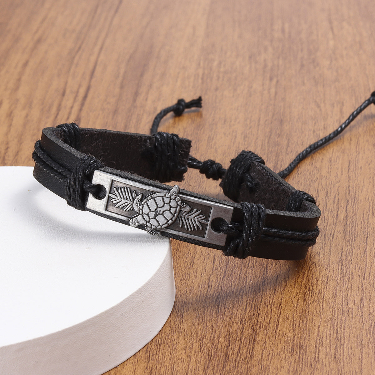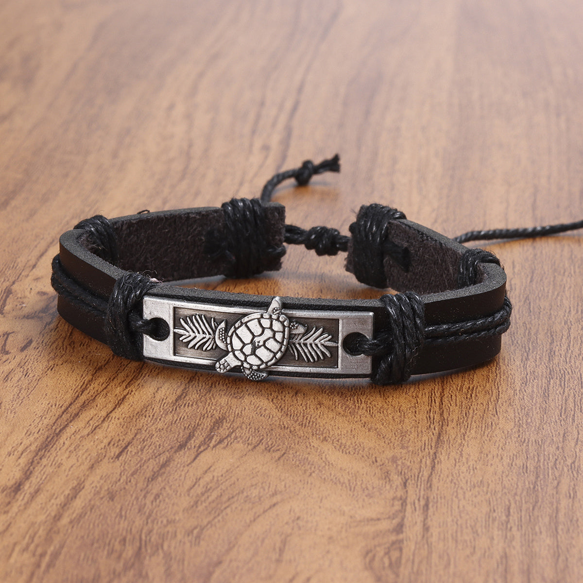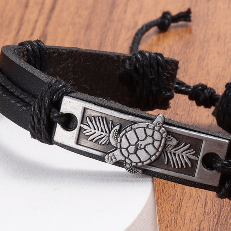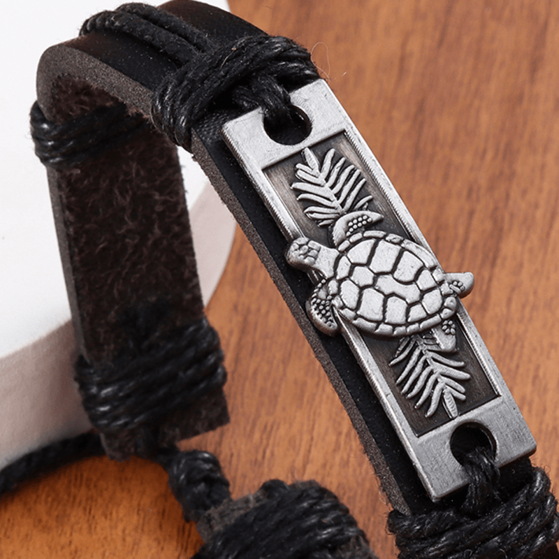 Add a touch of vintage charm to your style with this turtle head leather bracelet. Made of high-quality leather, it's a classic accessory that exudes masculinity.