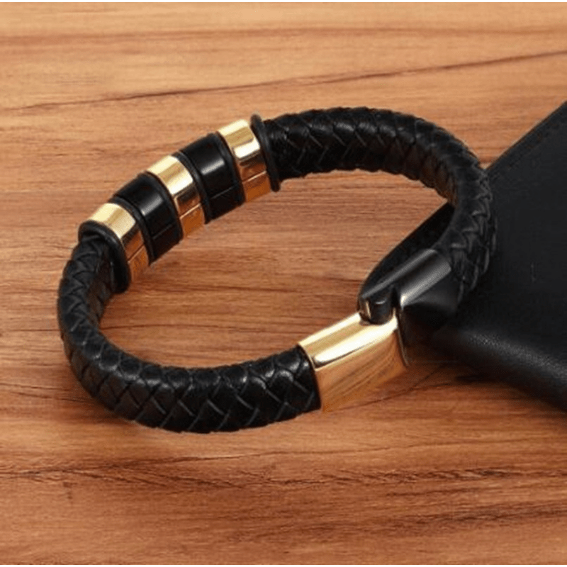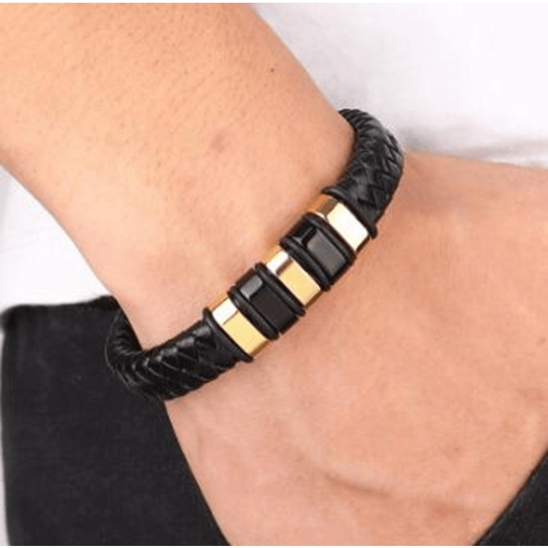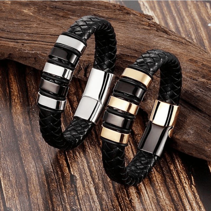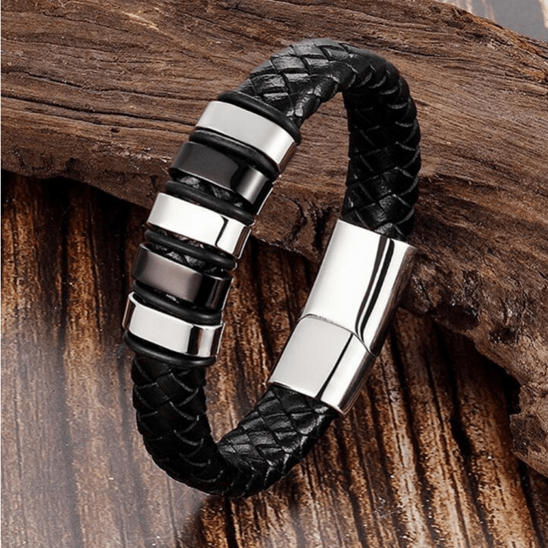 Add a touch of style to your look with this classic woven leather bracelet. Featuring a metal magnetic clasp, this bracelet is perfect for everyday wear or special occasions.