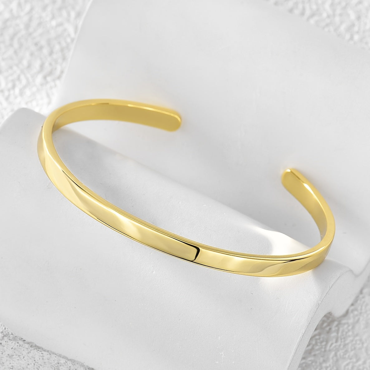 This smooth open bangle cuff bracelet is made of high-quality copper. It has a minimalist design and fits most wrist sizes. A perfect friendship gift.