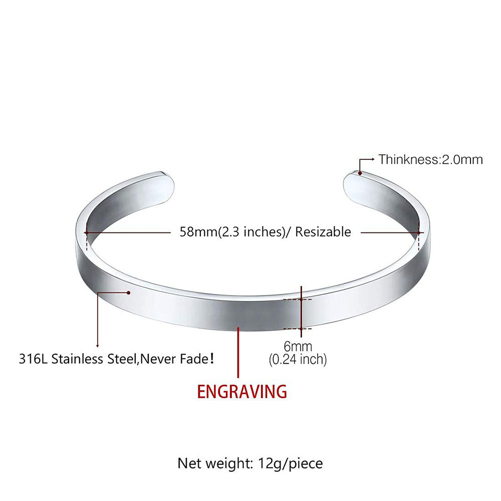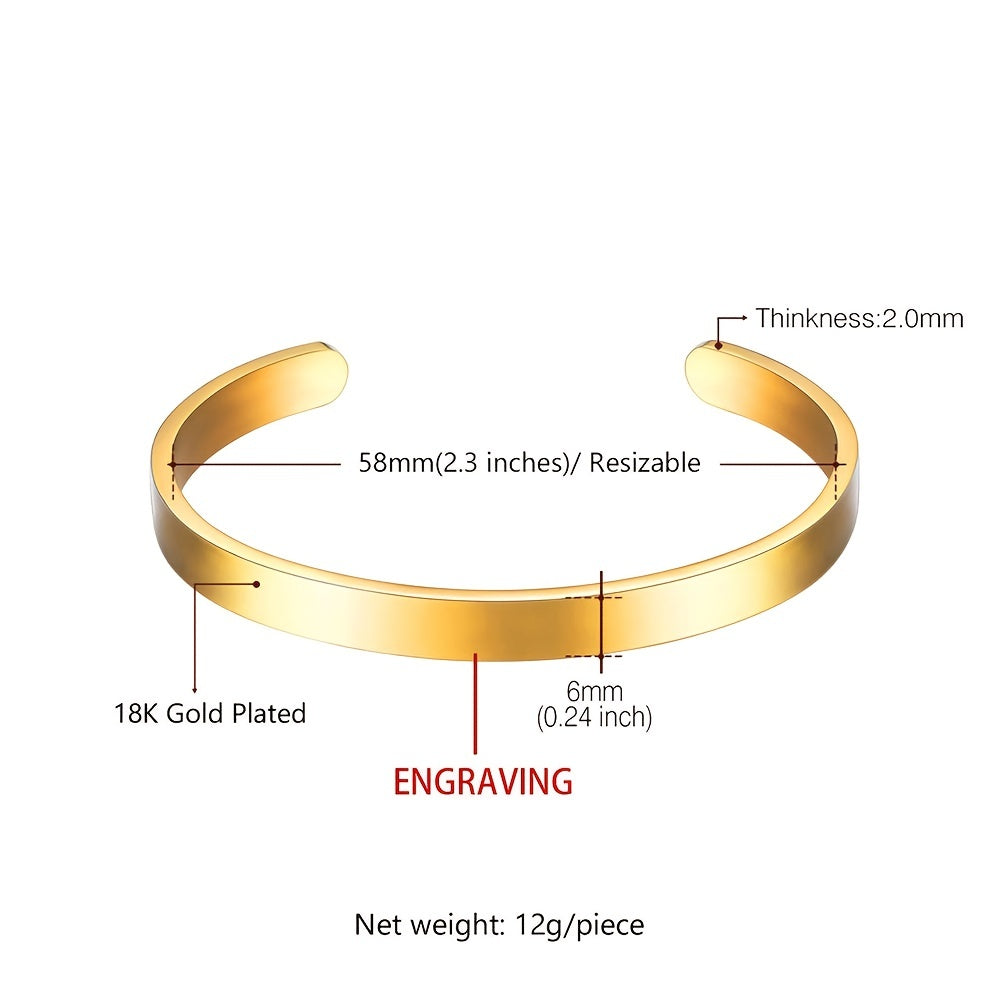 This open bangle cuff bracelet is crafted from high-quality stainless steel, offering a simple and sleek design that adds an elegant touch to any outfit.