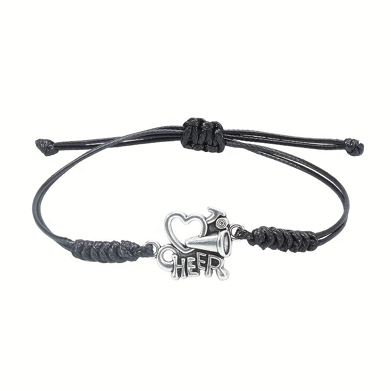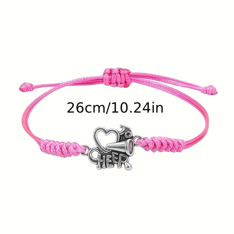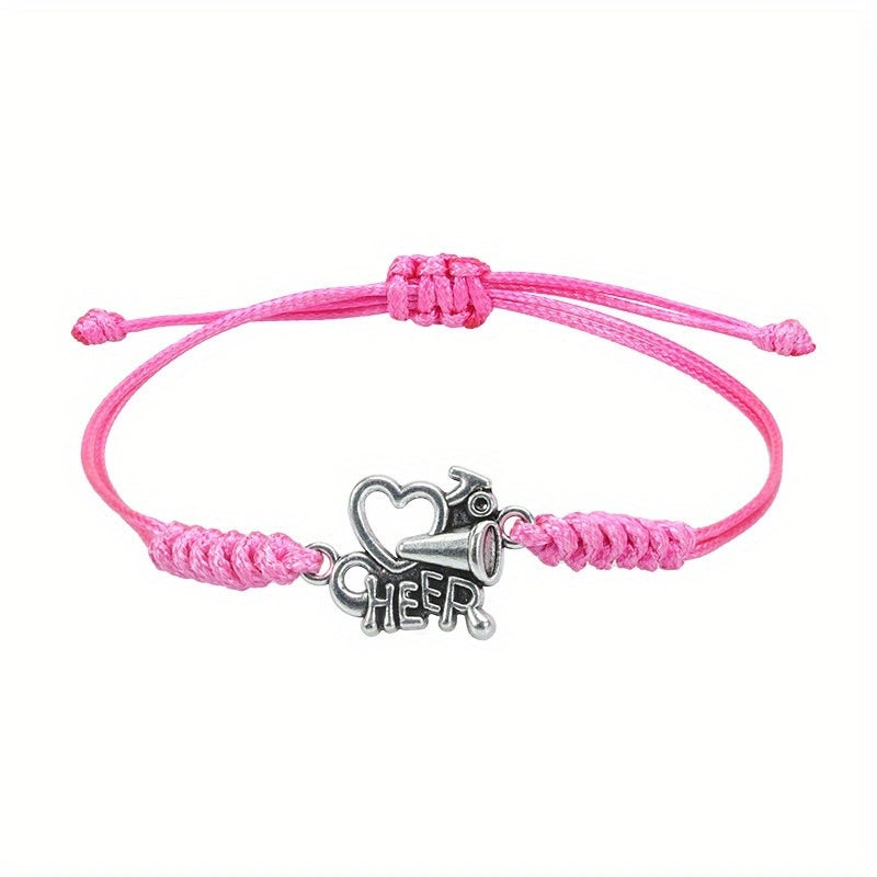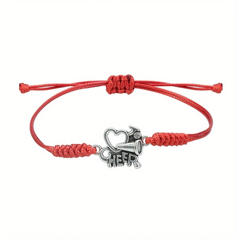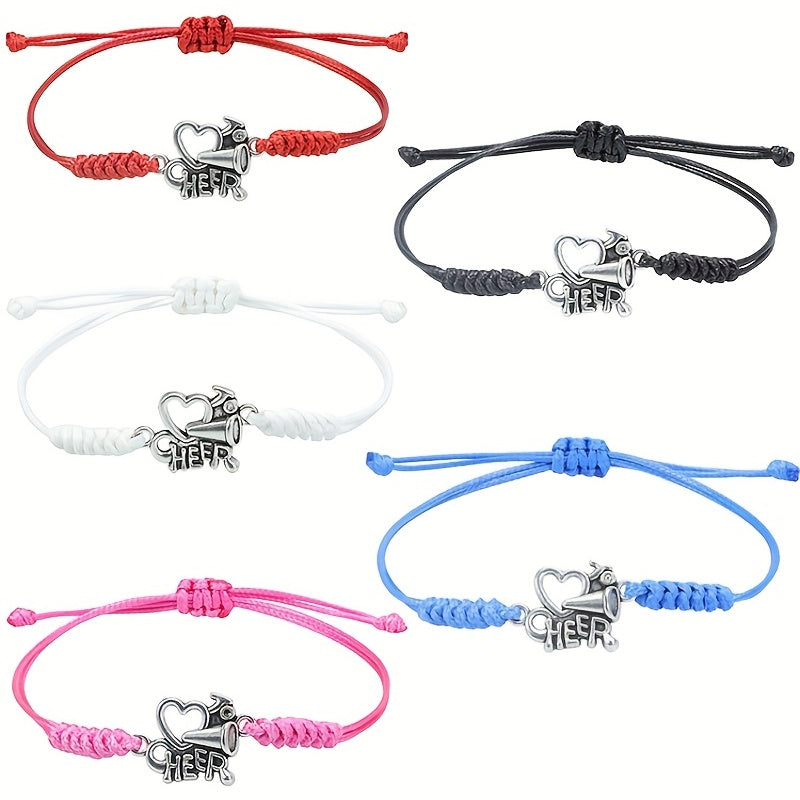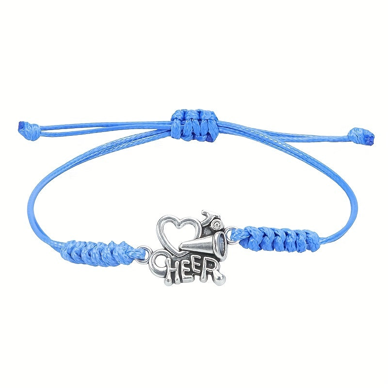 Show your team spirit with this multicolor cheerleading bracelet made from wax thread. Perfect for all cheerleaders and sports enthusiasts.