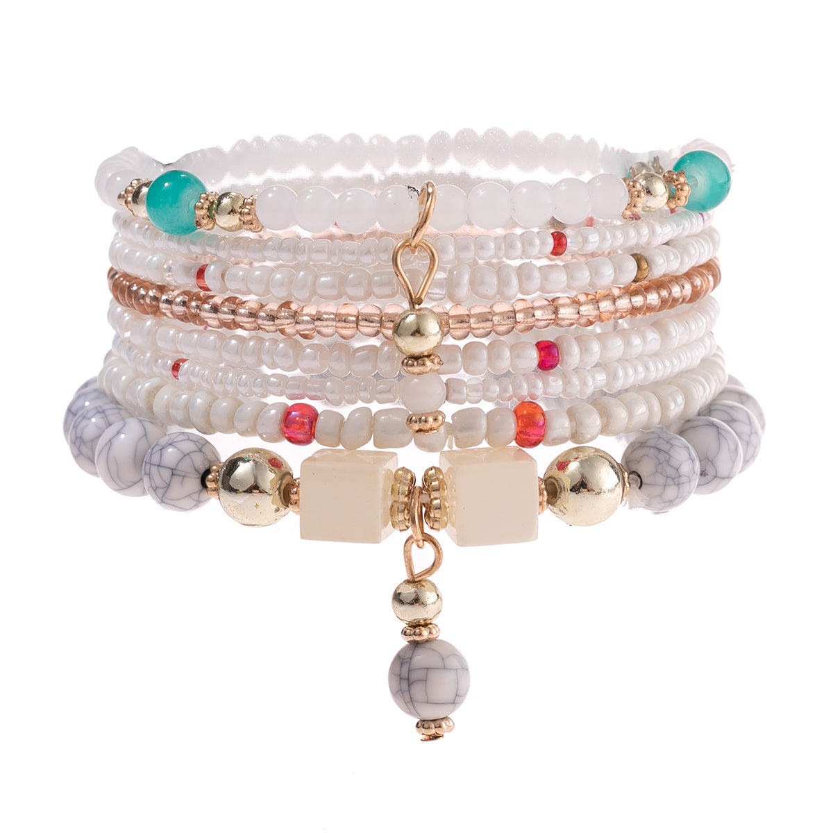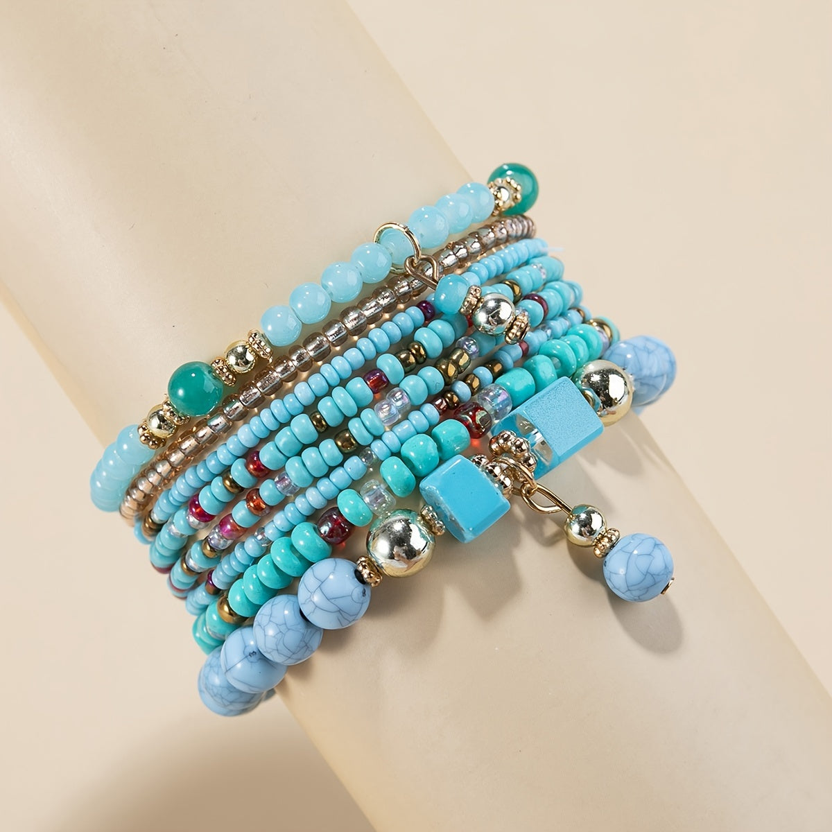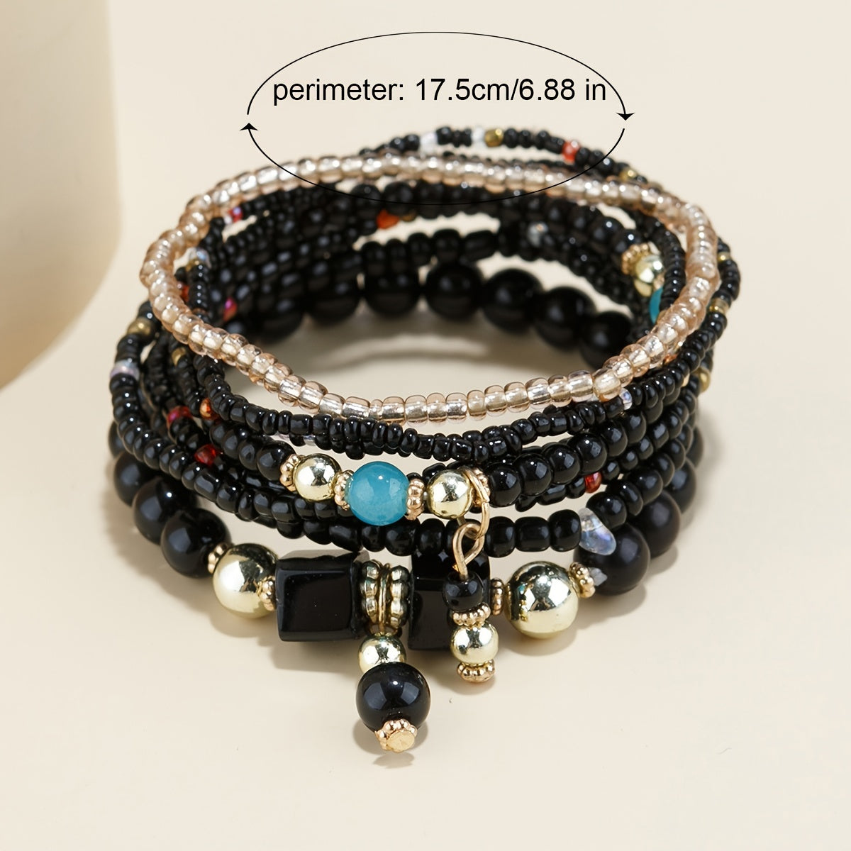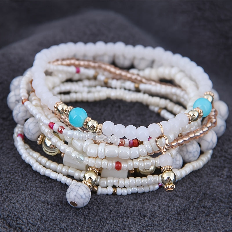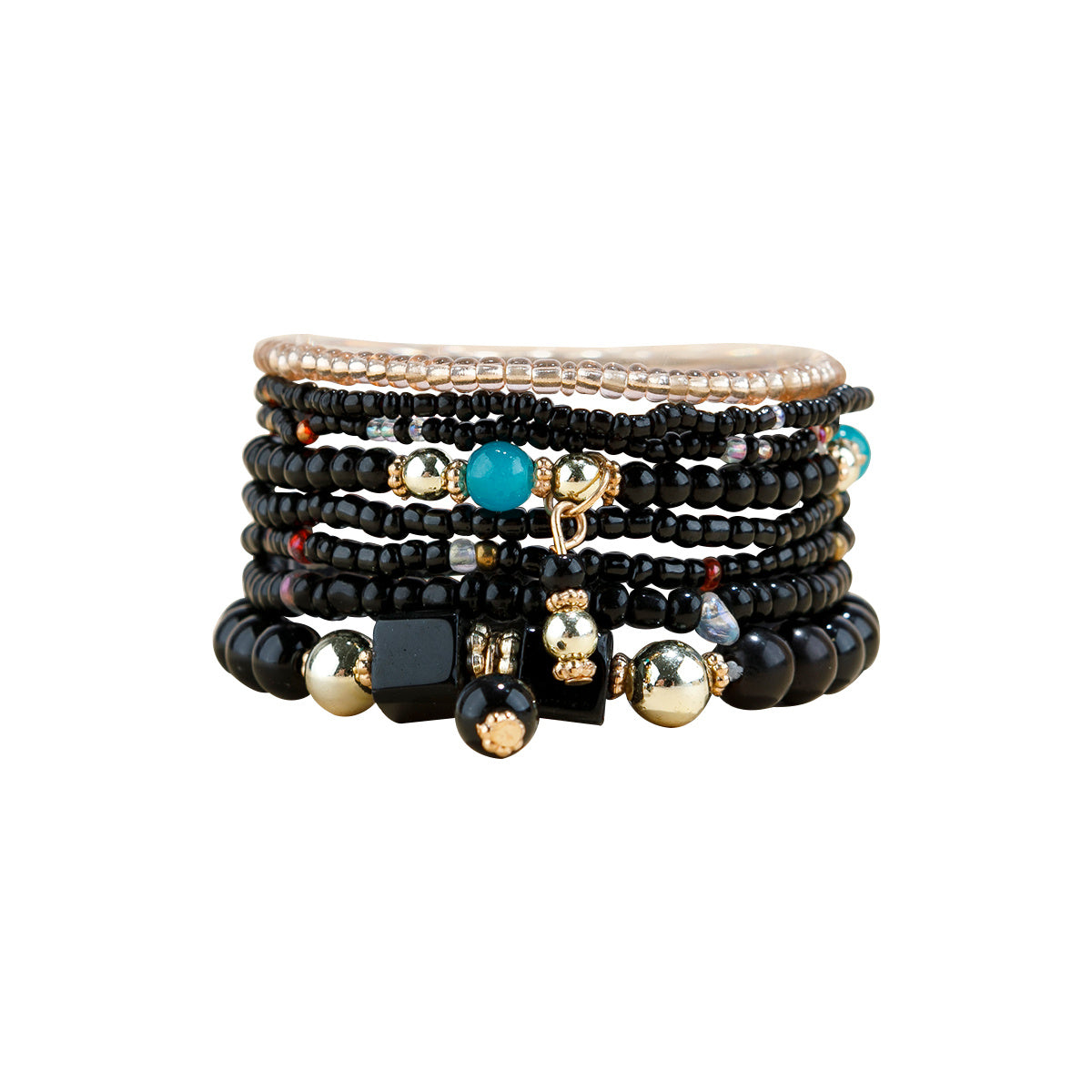 Add a vibrant touch to your outfit with this multilayer bracelet made of crystal beads. The stretch design ensures a comfortable fit.
