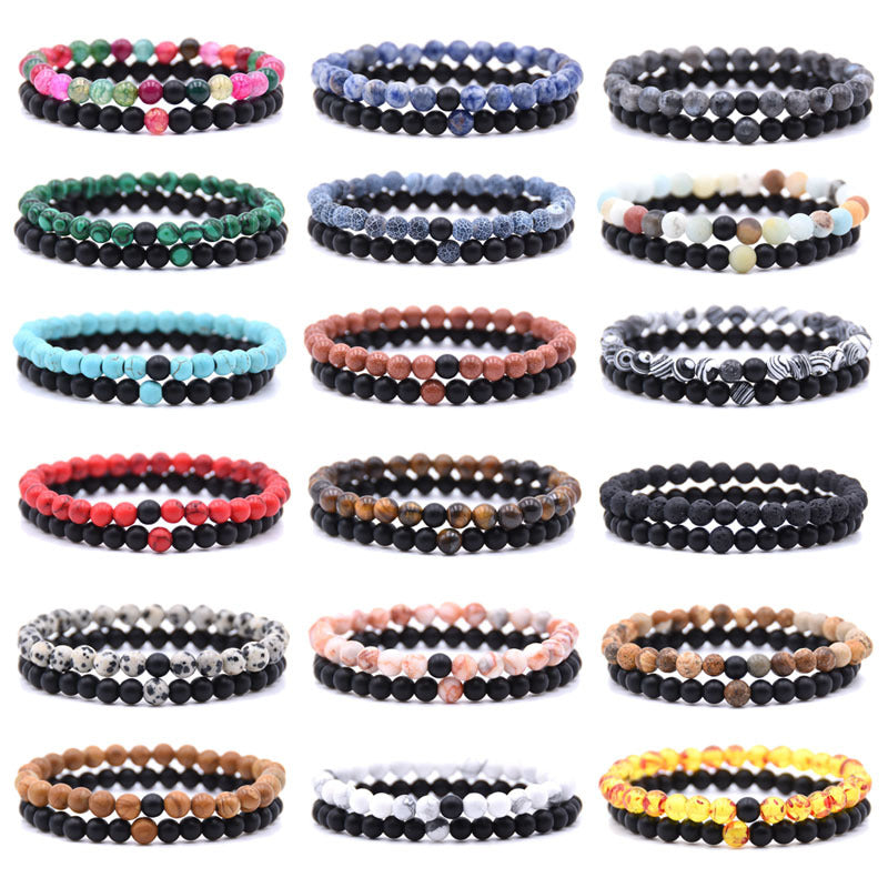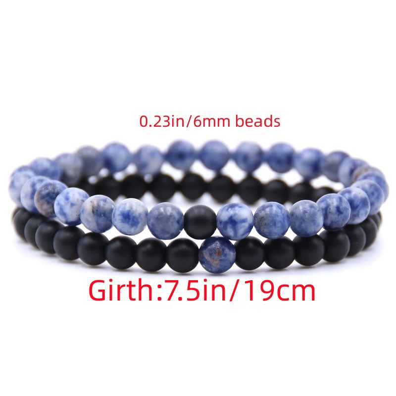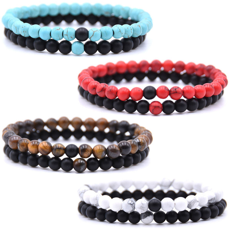 This bracelet set features a mix of natural stone beads, creating a stylish and rugged look. Perfect for men who appreciate unique jewelry pieces.