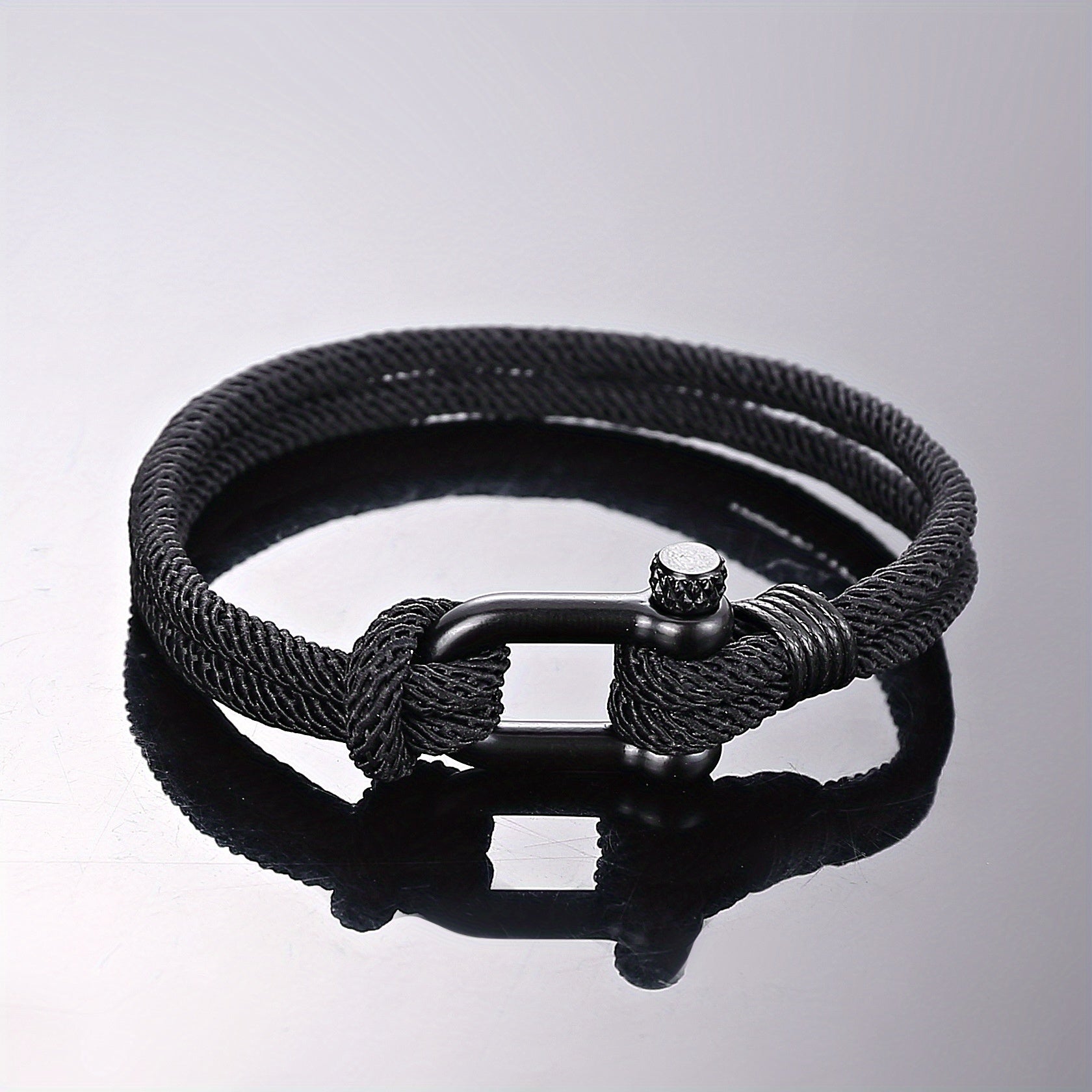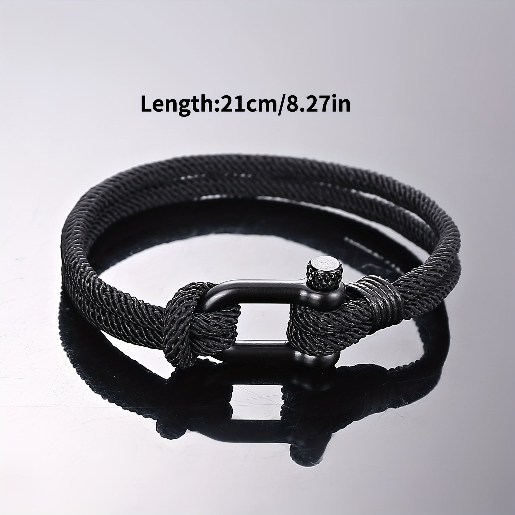 Embrace the nautical style with this sailor rope bracelet in navy blue and white colors. Perfect accessory for a maritime look.