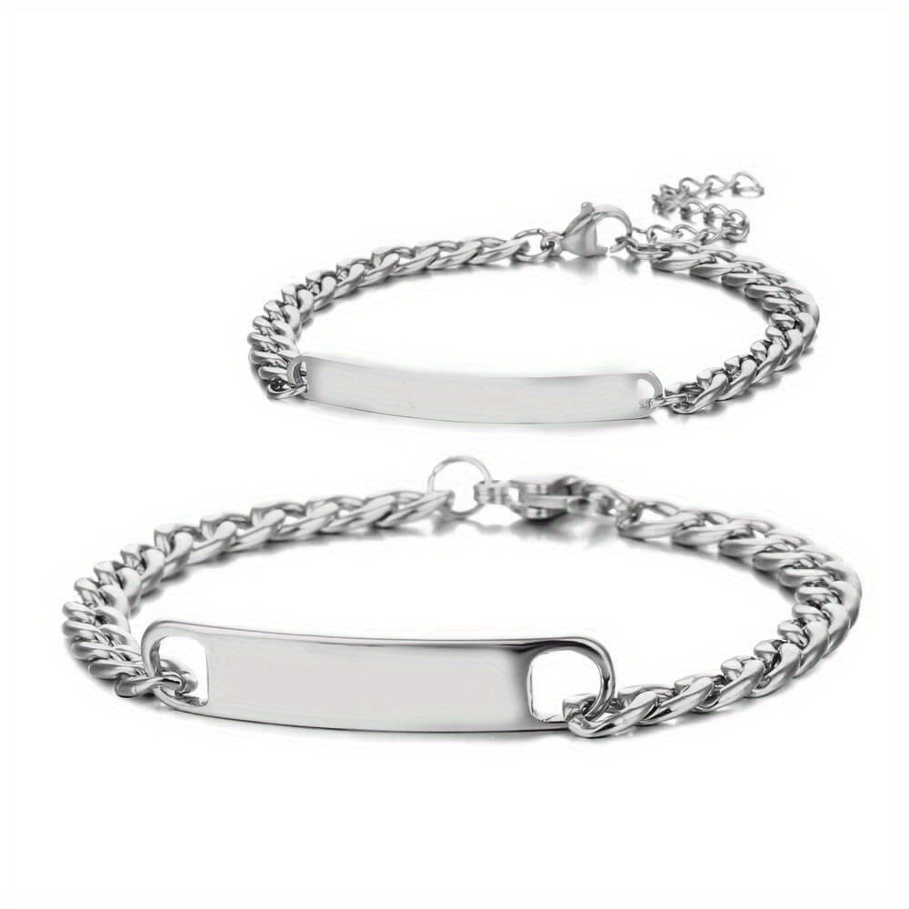 Celebrate your love with these custom name stainless steel bracelets. Perfect gift for couples on their anniversary.