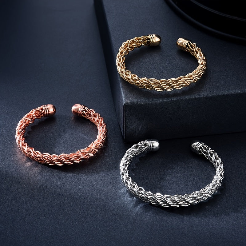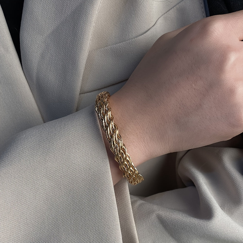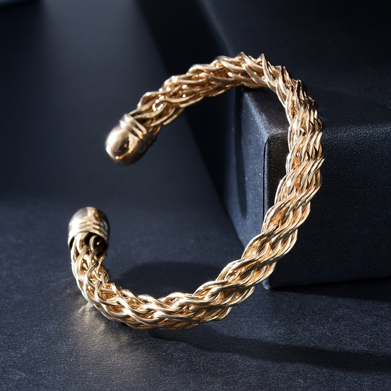 This punk twisted Cuban thick bracelet is a statement piece for men's jewelry. It features a chunky design and an open bangle style, making it a stylish accessory.