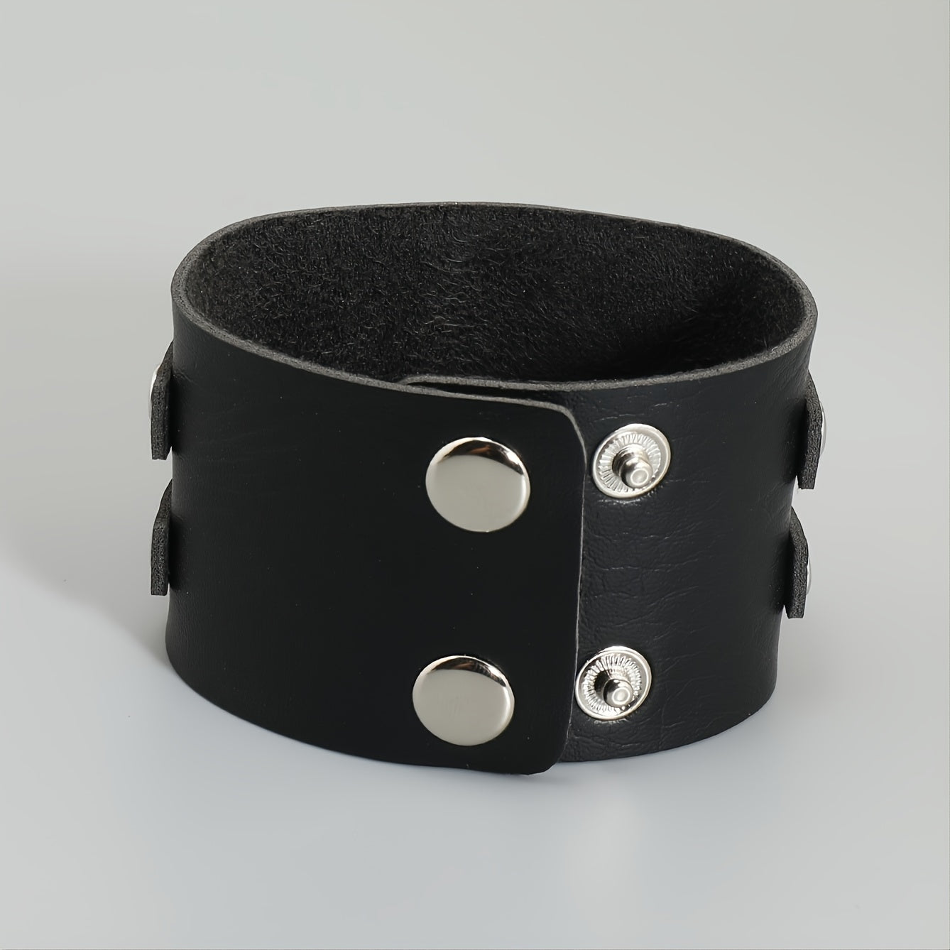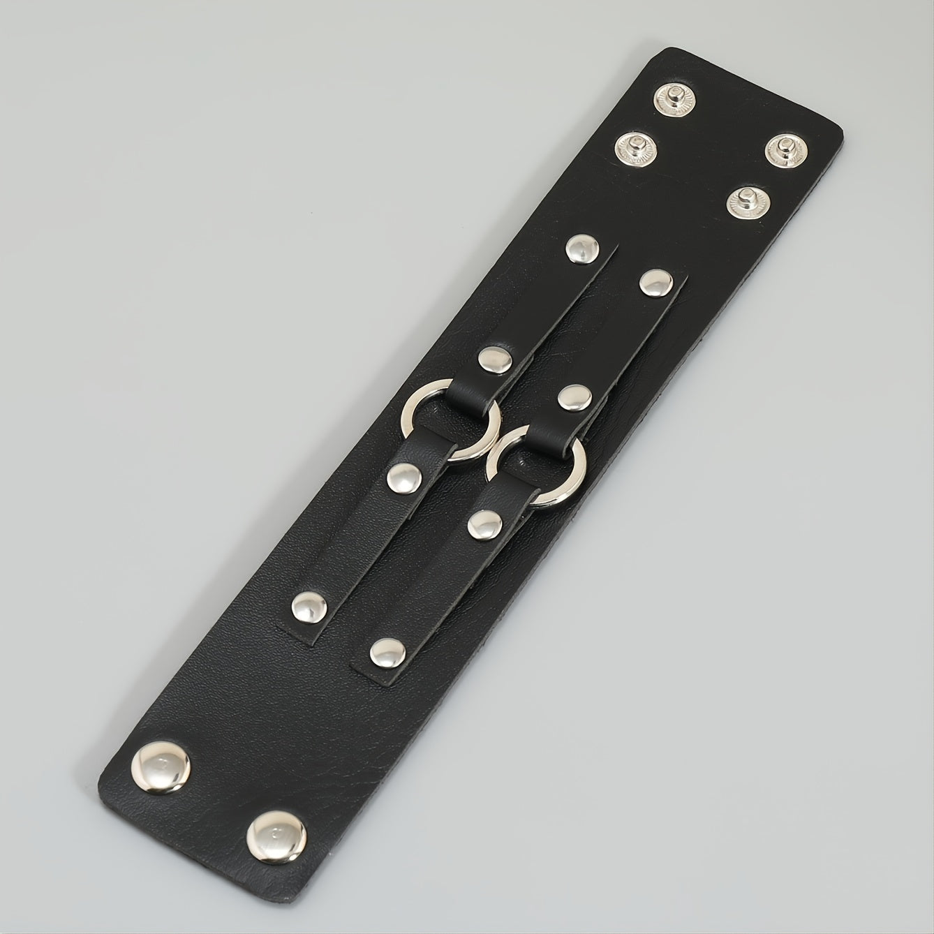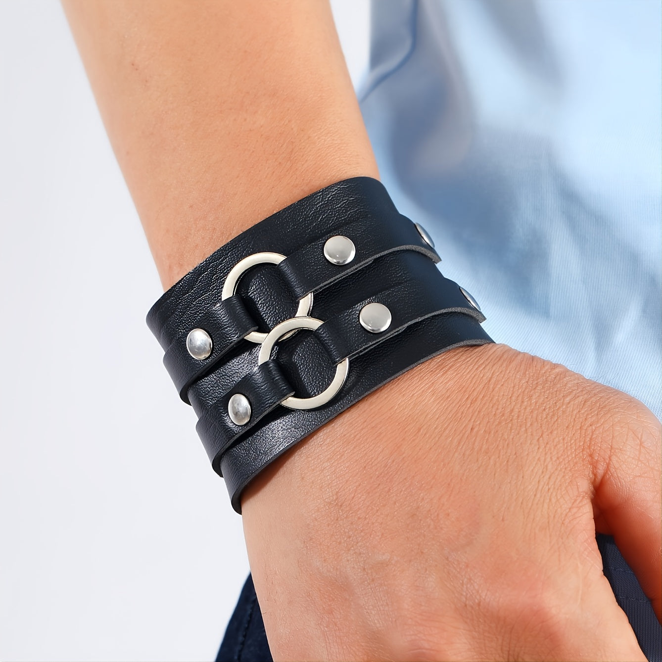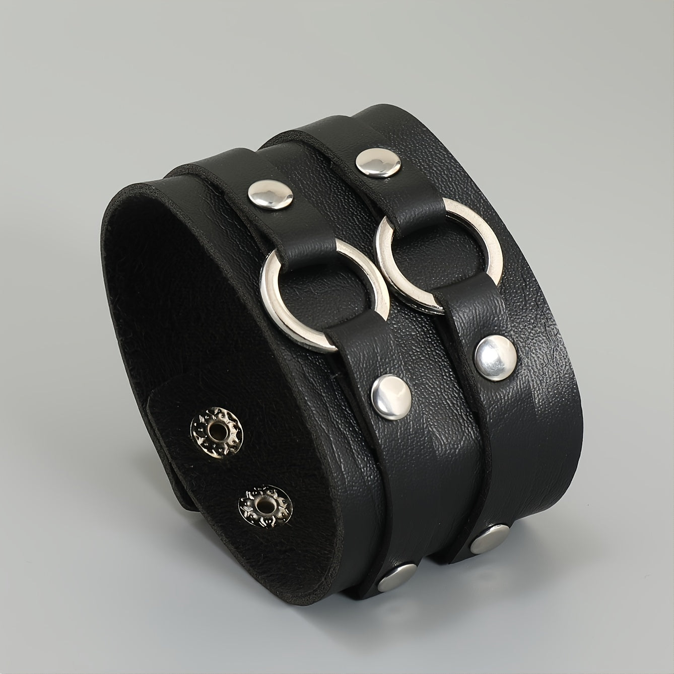 Enhance your style with this punk rock double loop cuff bracelet made of quality leather. Perfect for men who love a bold and edgy look.