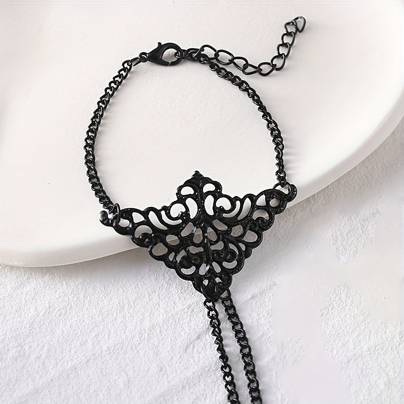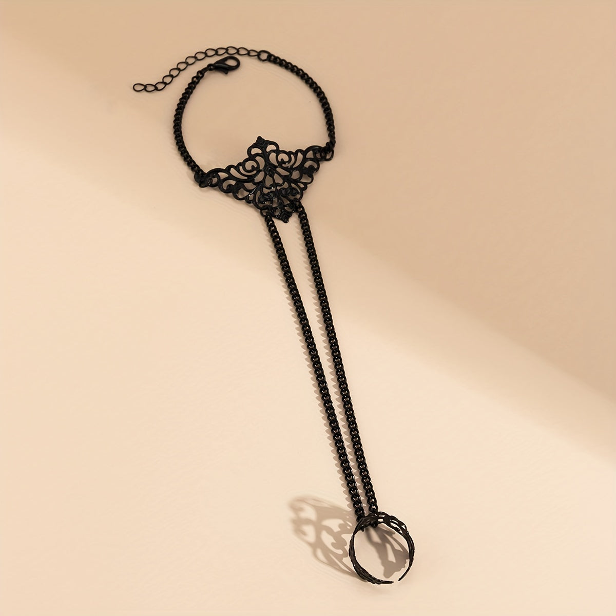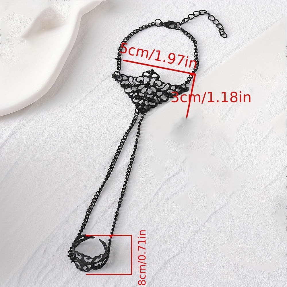 Add a touch of personality with this punk style finger ring bracelet. It features a vintage design and unique hollow out details, making it a stylish hand jewelry accessory.