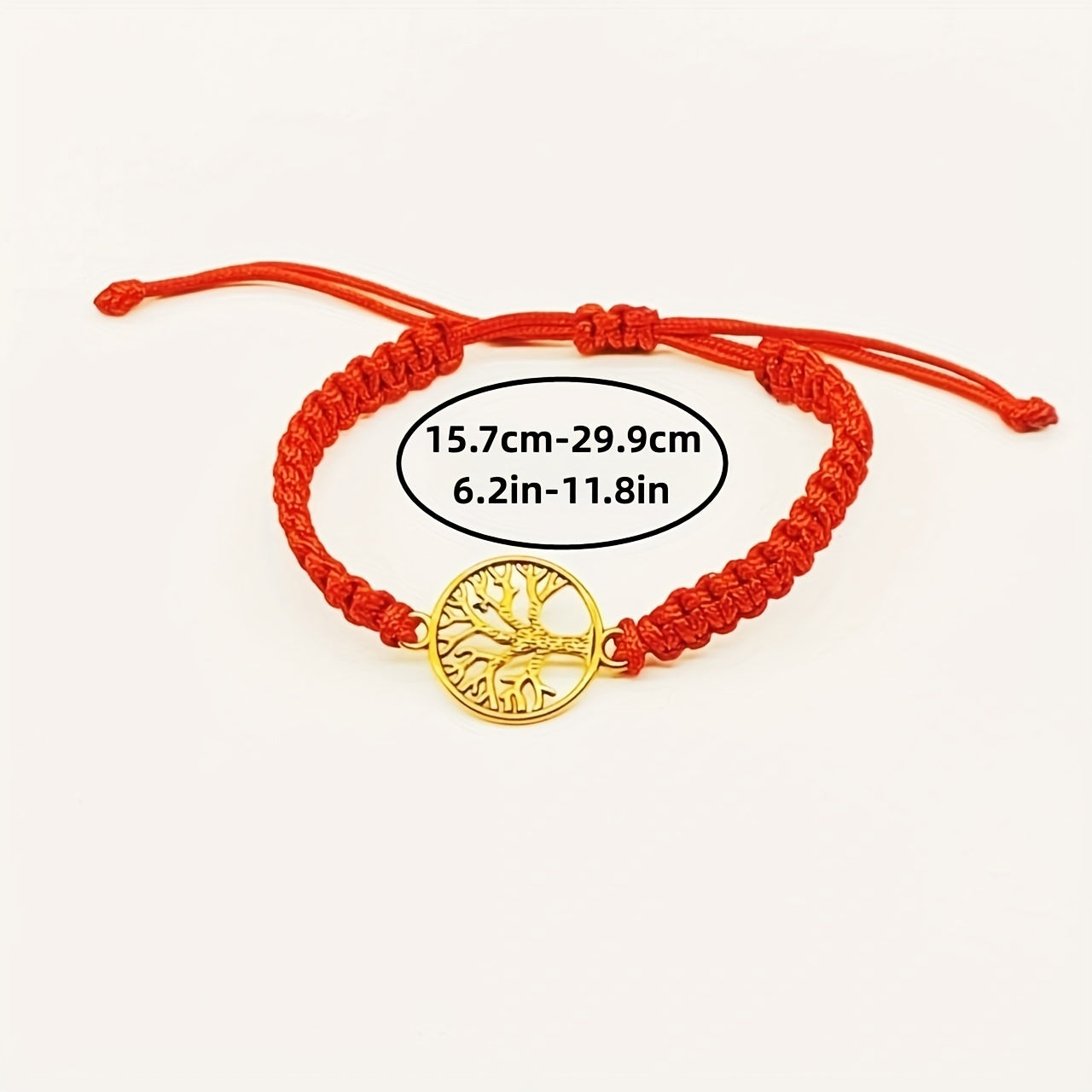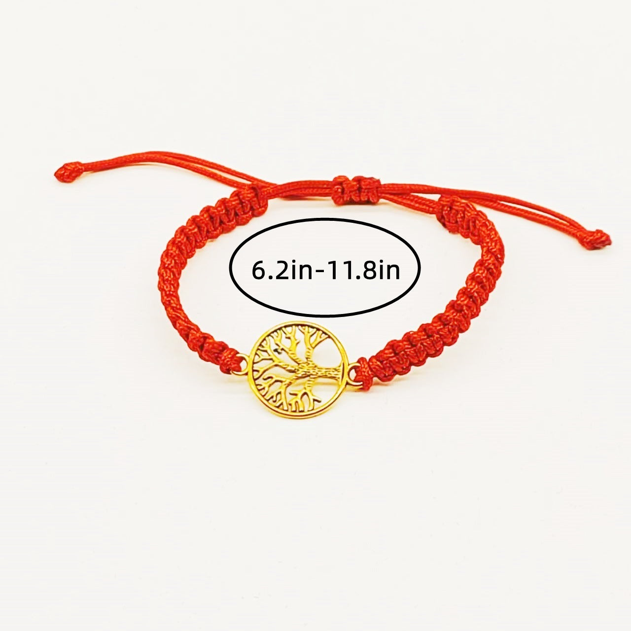 • Red braided rope bracelet with Tree of Life design