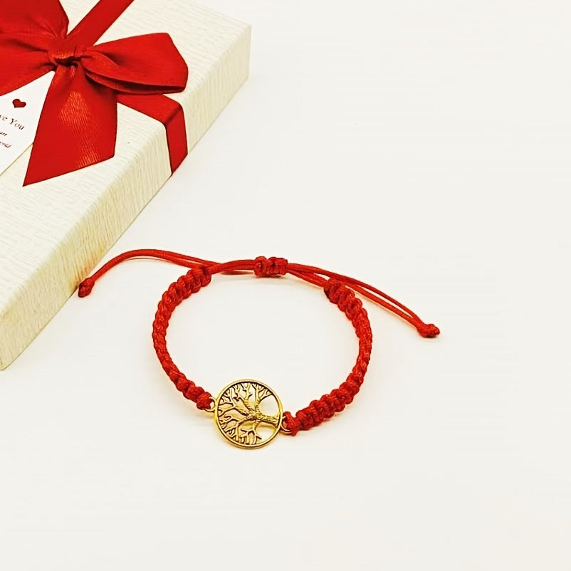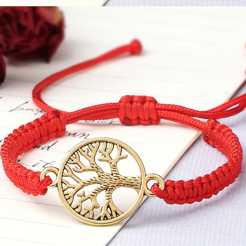 Add a touch of nature-inspired beauty to your look with this red braided rope bracelet featuring a Tree of Life design. Perfect for women and girls.