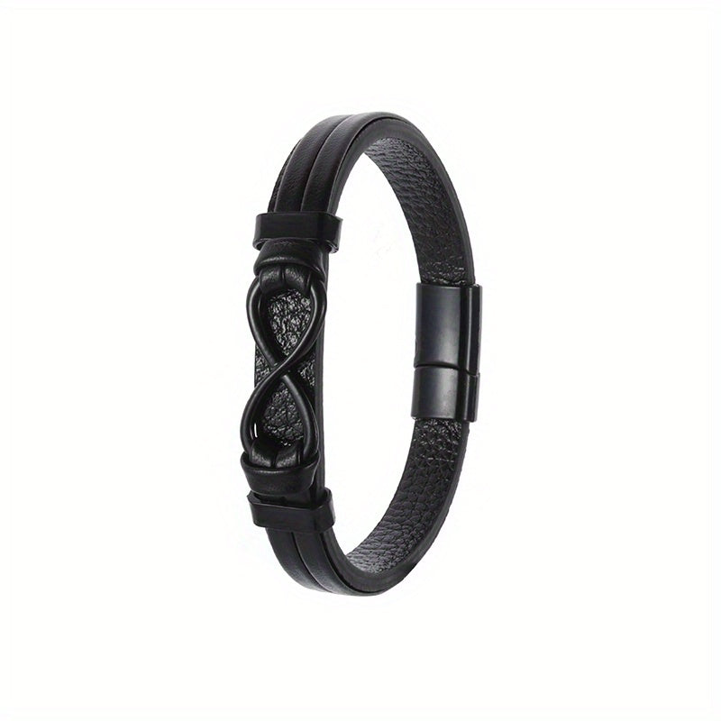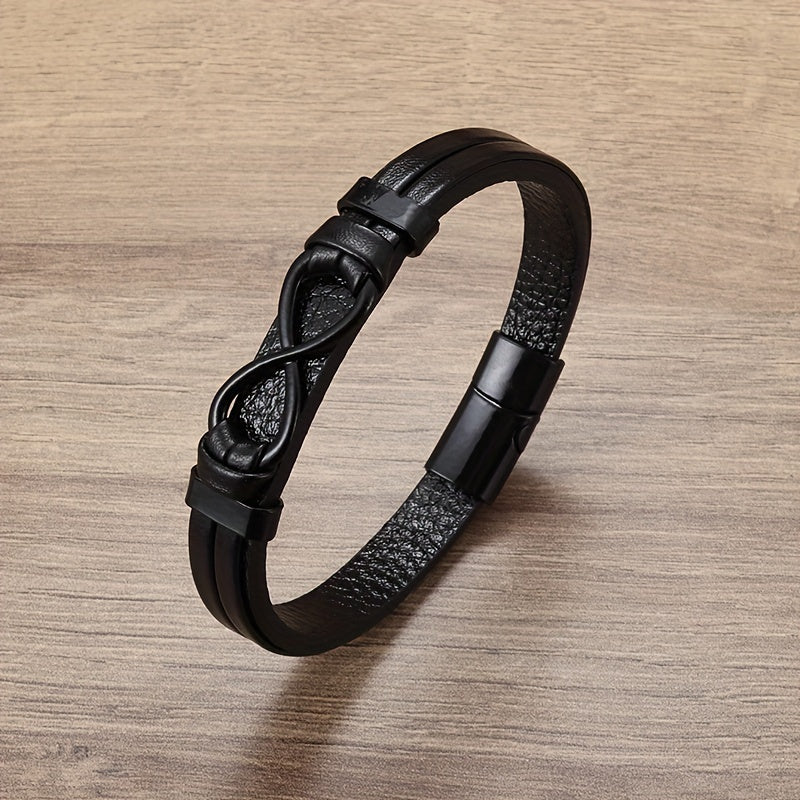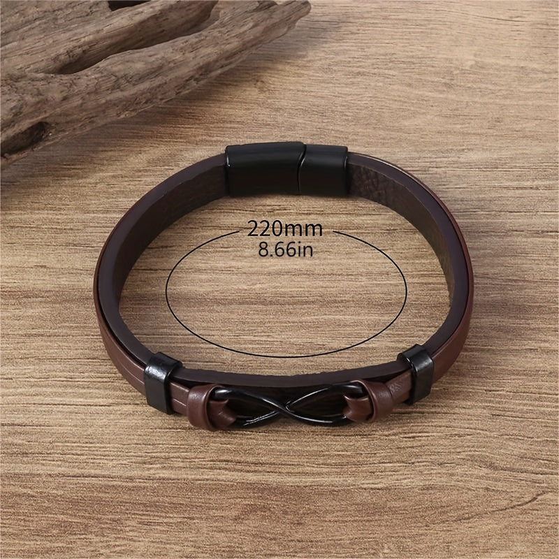 Add a touch of retro style with this double-layer leather bracelet featuring number 8 design. Perfect accessory for men.