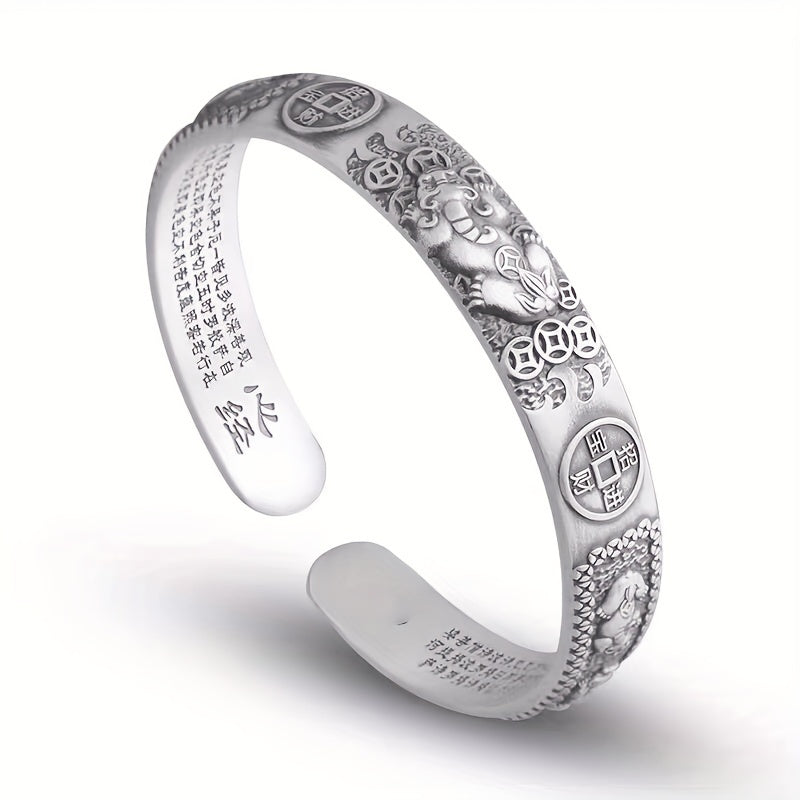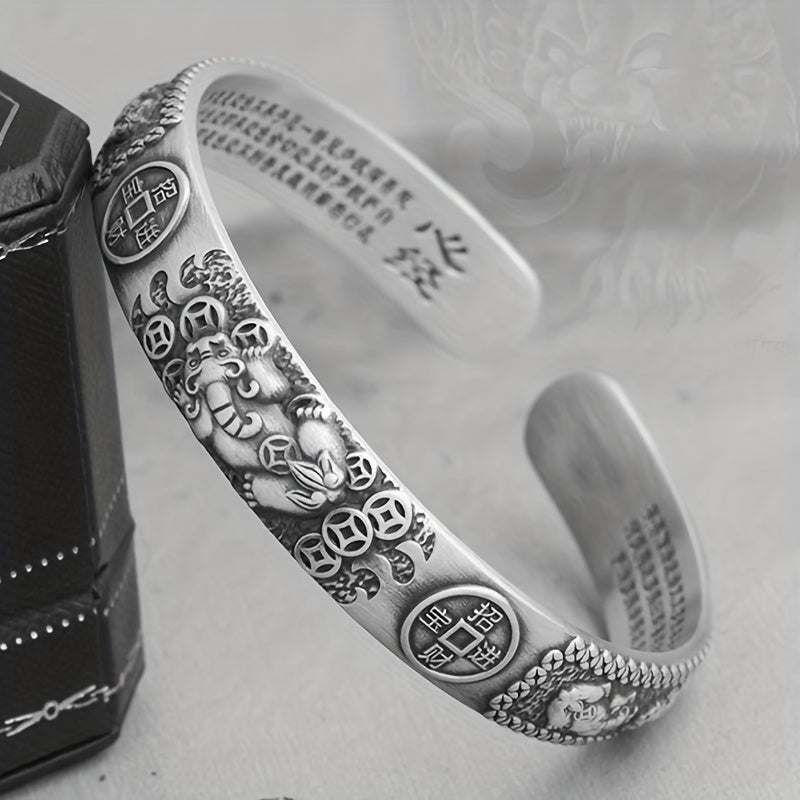 This vintage silver Pixiu bracelet bangle is a symbol of wealth and luck. It is a perfect accessory for both women and men. Give it as a gift to bring good fortune.