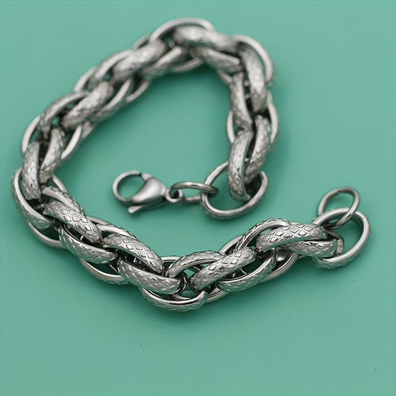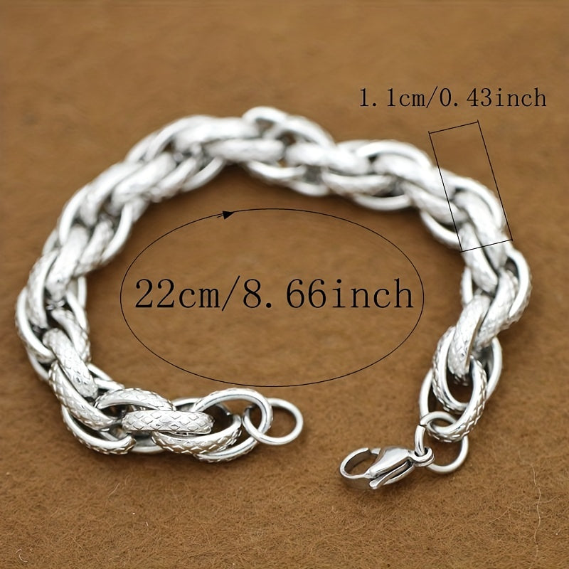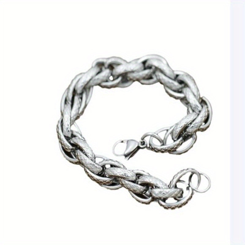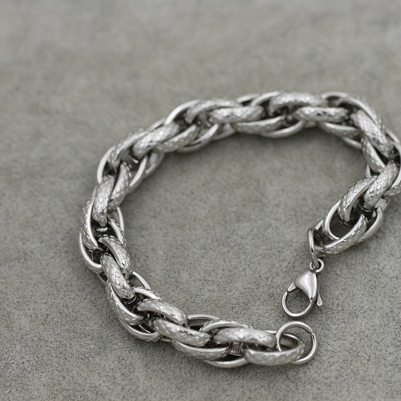 This silver twisted link chain bracelet is a stylish accessory for men. Made of high-quality stainless steel, this hand chain is a versatile piece that can be worn on various occasions.