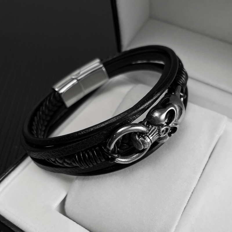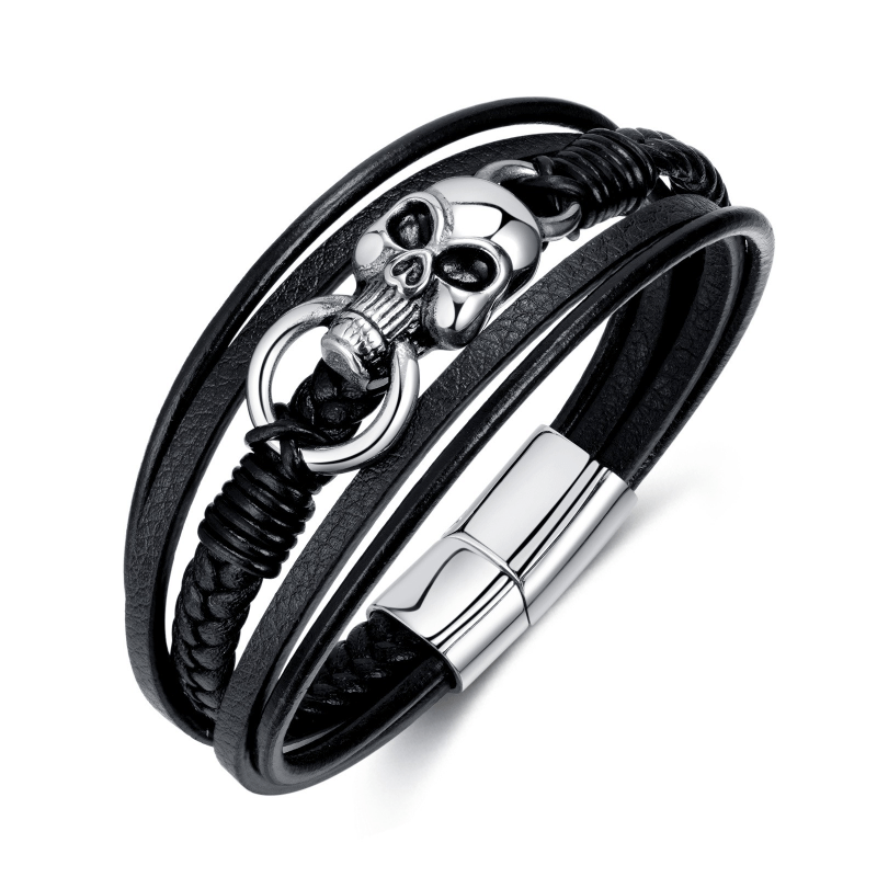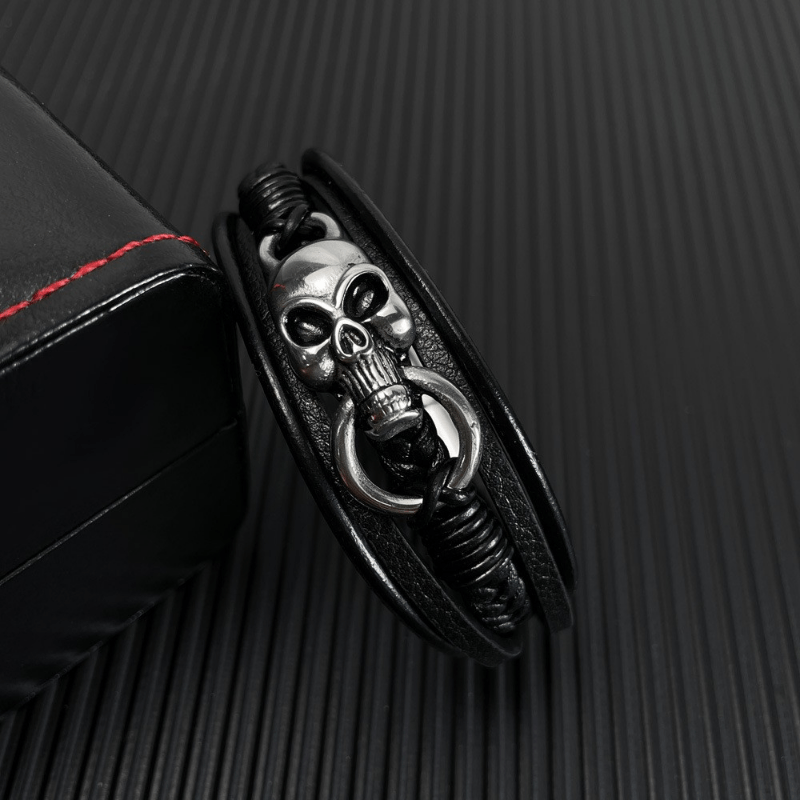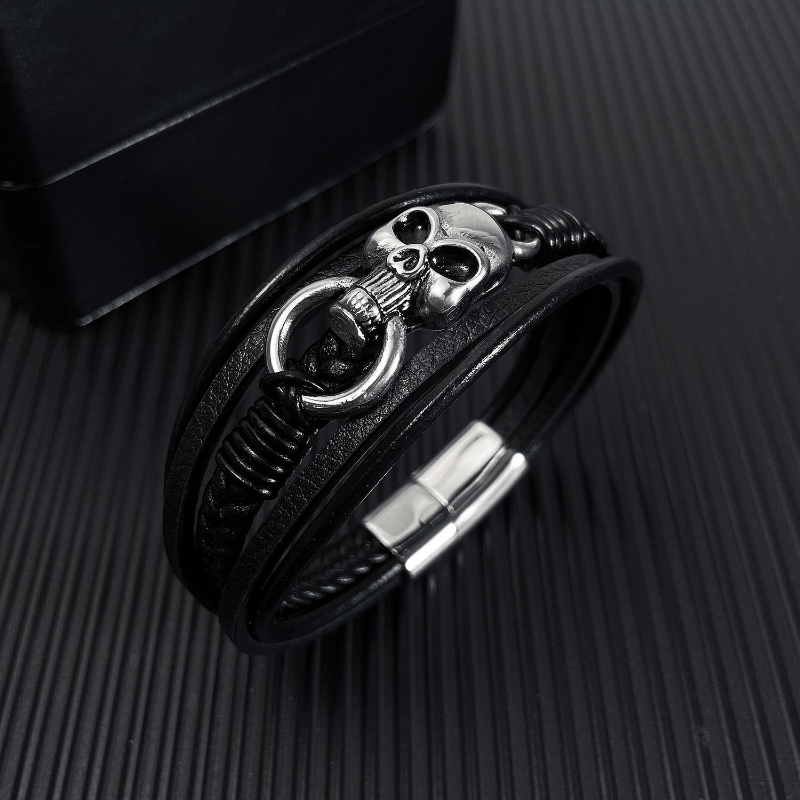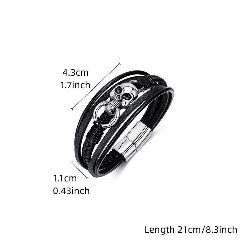 Add a touch of edgy style with this vintage braided multilayer PU leather bracelet featuring a skull design.