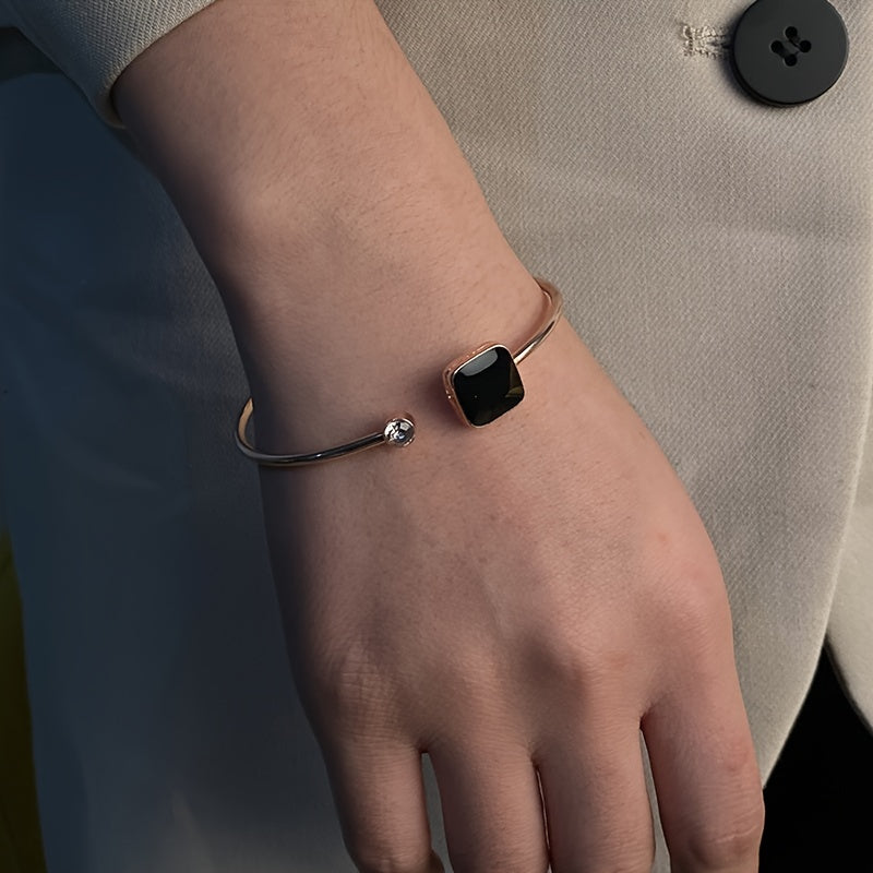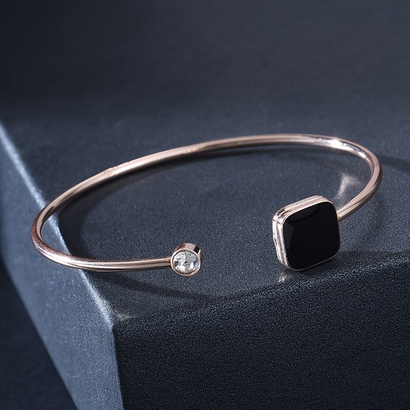 Elevate your style with this stunning cuff bangle bracelet featuring square shape rhinestones. Perfect for adding a touch of elegance to any outfit.