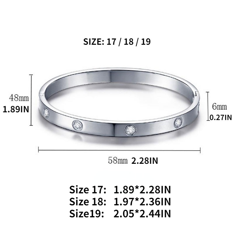 Elegant round shape zircon bangle perfect for banquets and special occasions. Made of high-quality stainless steel with 18K gold plating for a luxurious look.