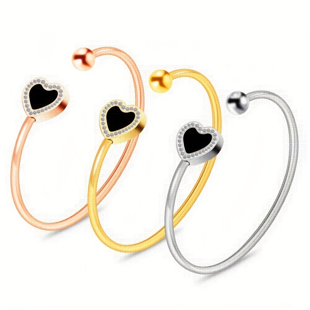 Express your romantic side with this gorgeous stainless steel cuff bracelet featuring an enamel love heart design. Perfect for adding a touch of love to any outfit.