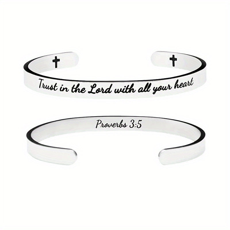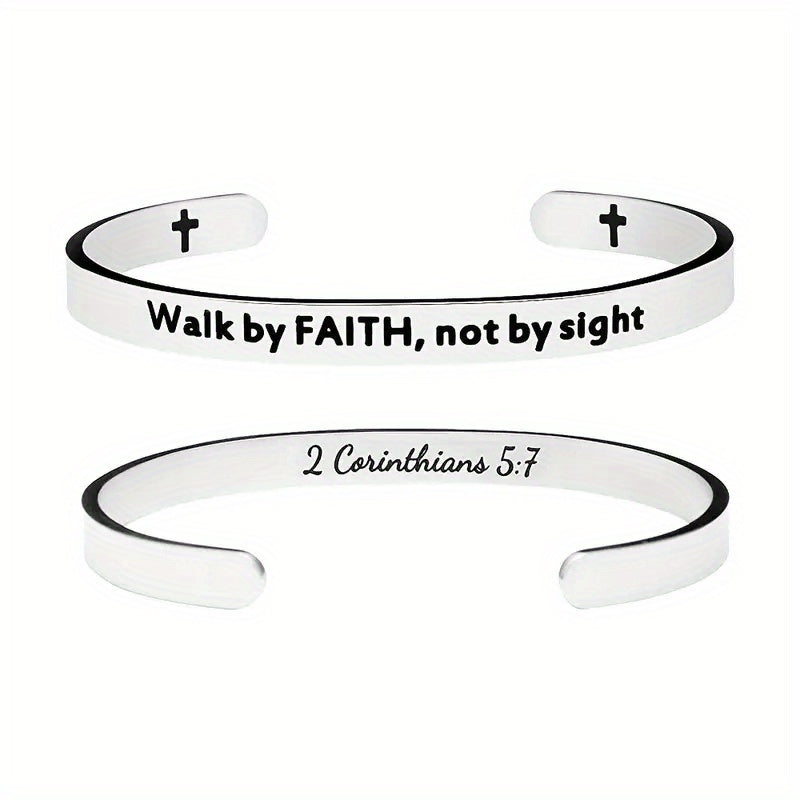 This funky cuff bangle features inspiring laser engraved letters and a cross pattern, making it a perfect faith-based gift for women. Ideal for graduation season gifting.