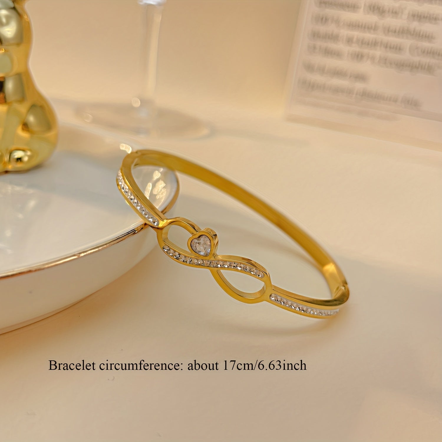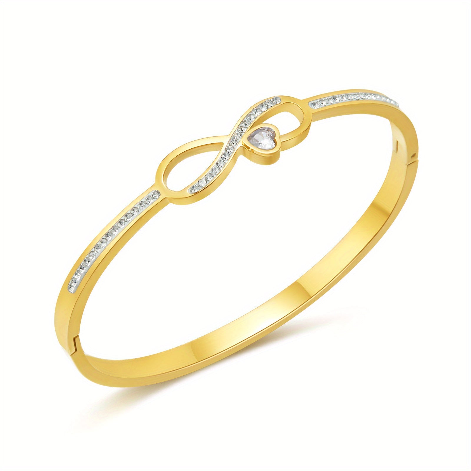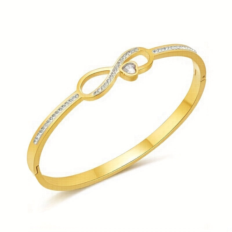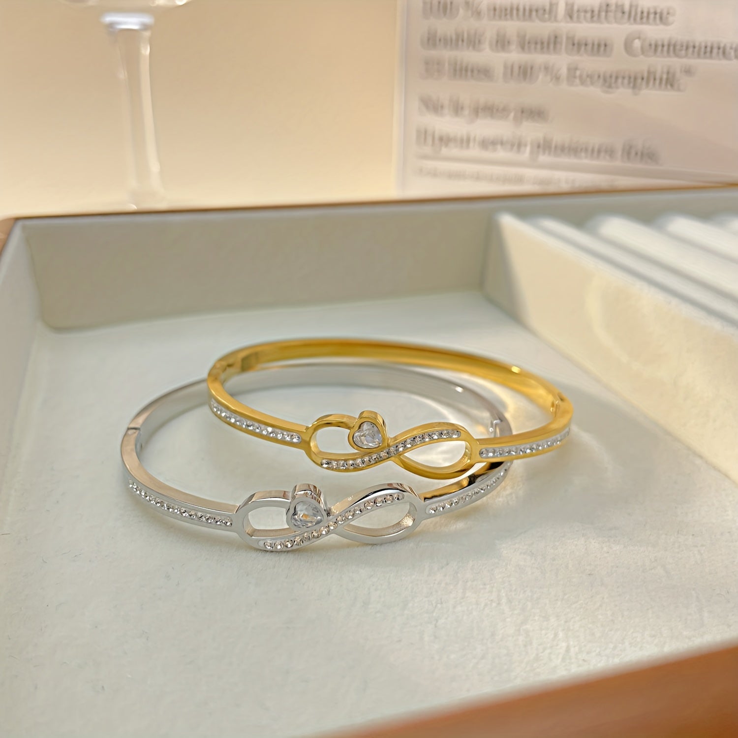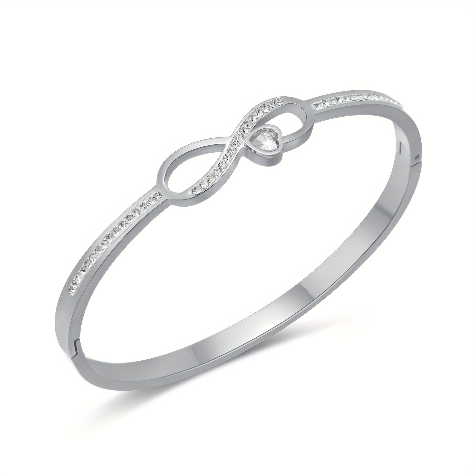 Beautiful stainless steel bracelet featuring zircon stones and eternity love heart infinity charm. A perfect gift for women and girls.