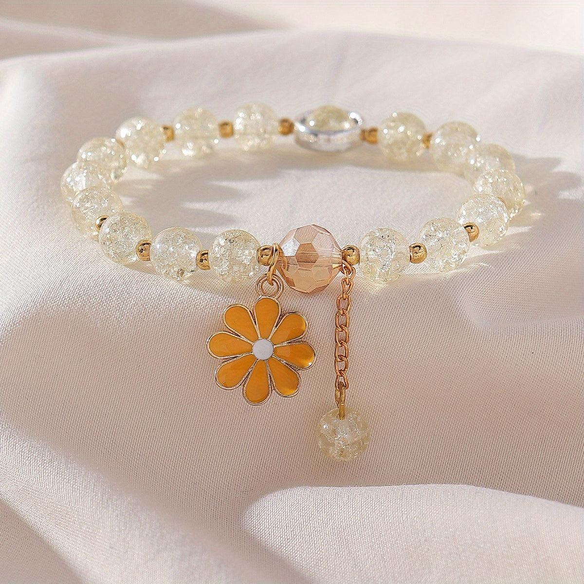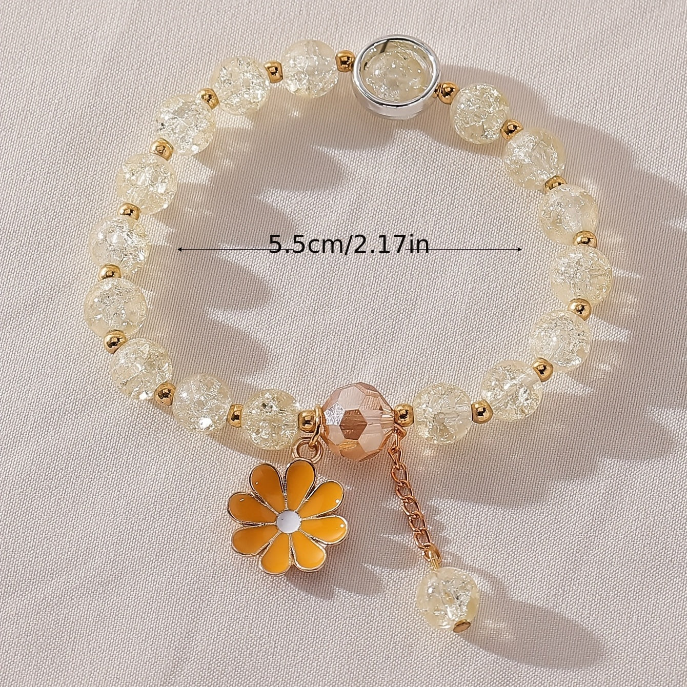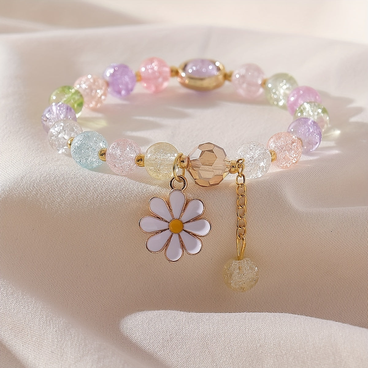 This stylish bracelet features a cracked glass beaded daisy pendant on an elastic hand string, perfect for summer fashion.