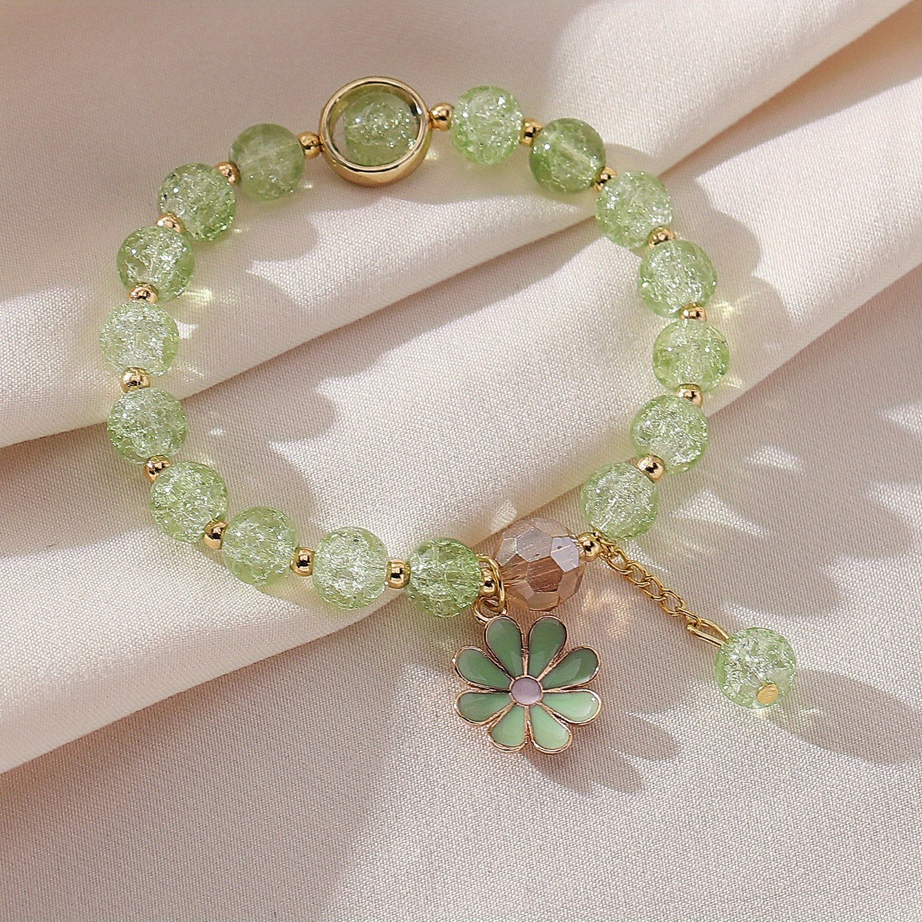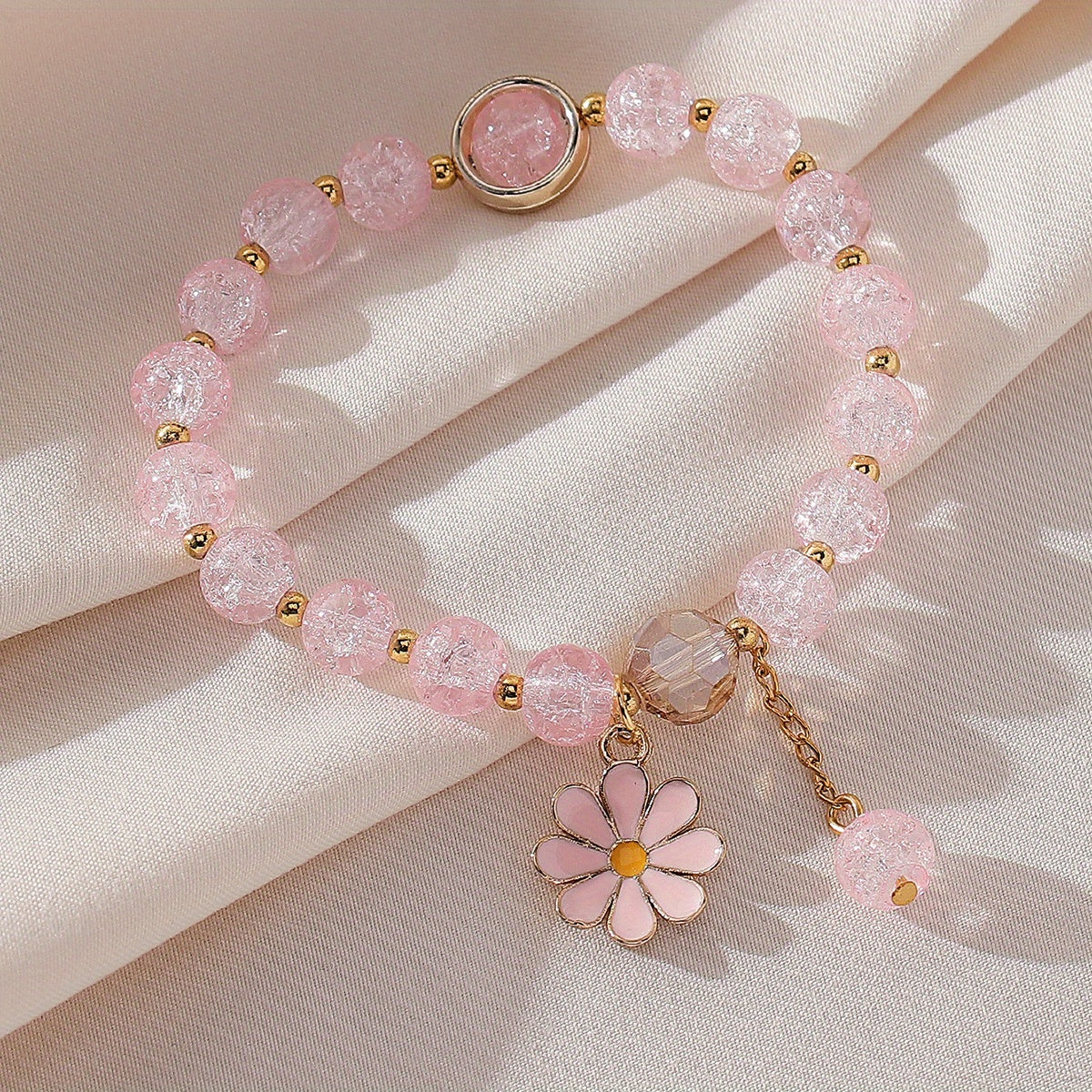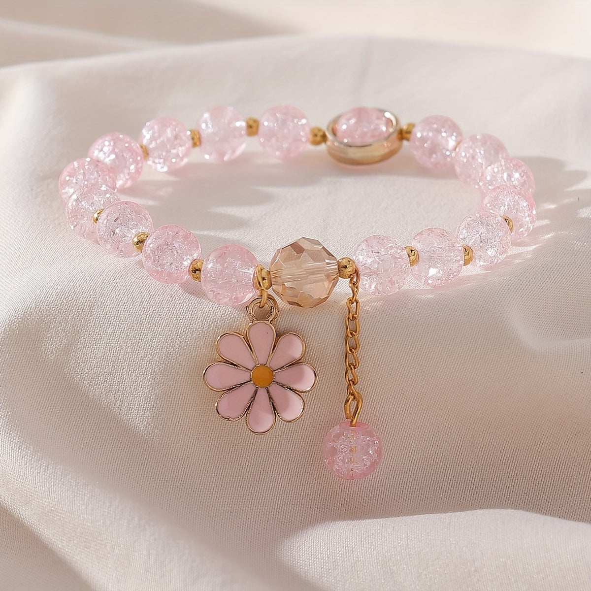 This stylish bracelet features a cracked glass beaded daisy pendant on an elastic hand string, perfect for summer fashion.