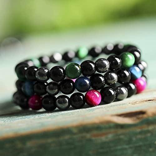 Experience the power of triple protection with this combination of hematite and natural stone beads bracelet. Perfect for Reiki and Feng-Shui practices.