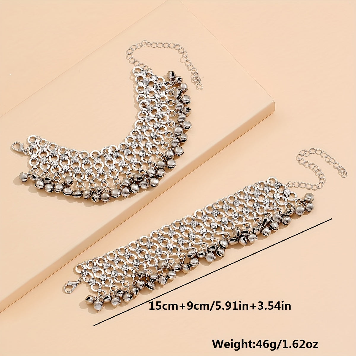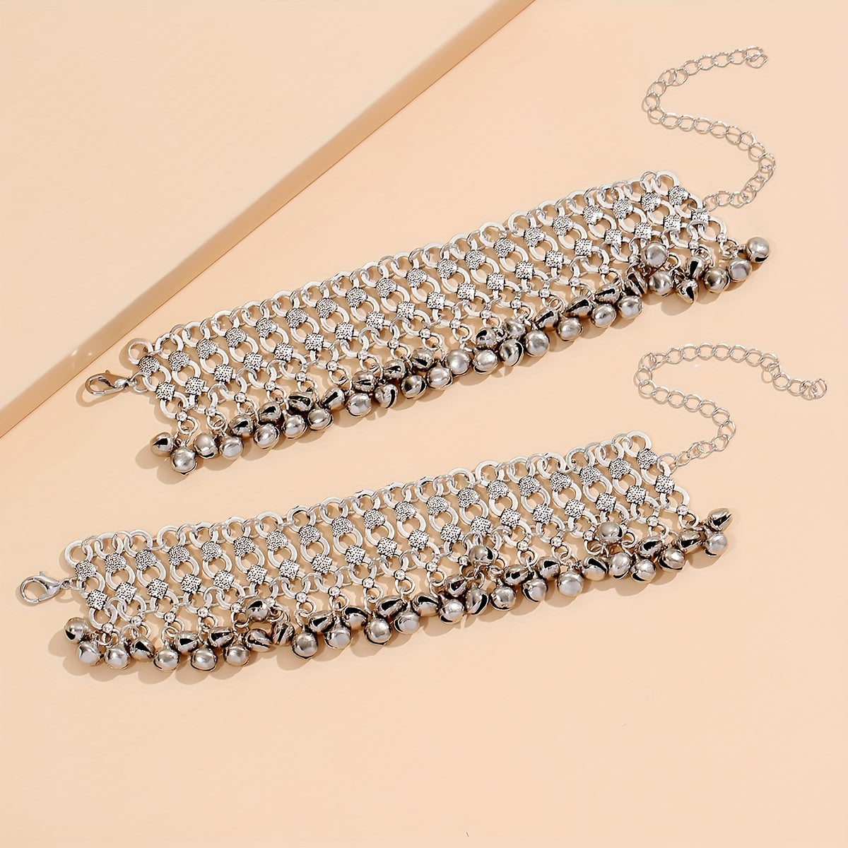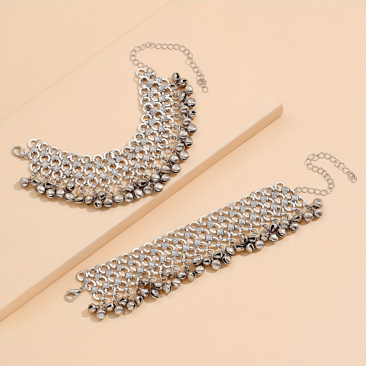 Elevate your style with this bohemian ankle bracelet set featuring a bell shape pendant. Perfect for adding a touch of vintage charm.