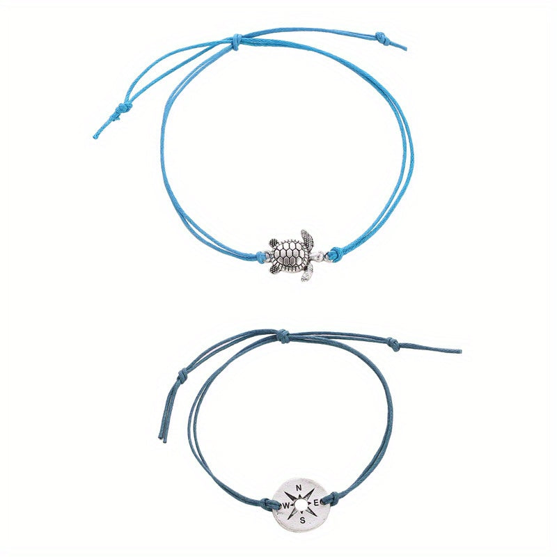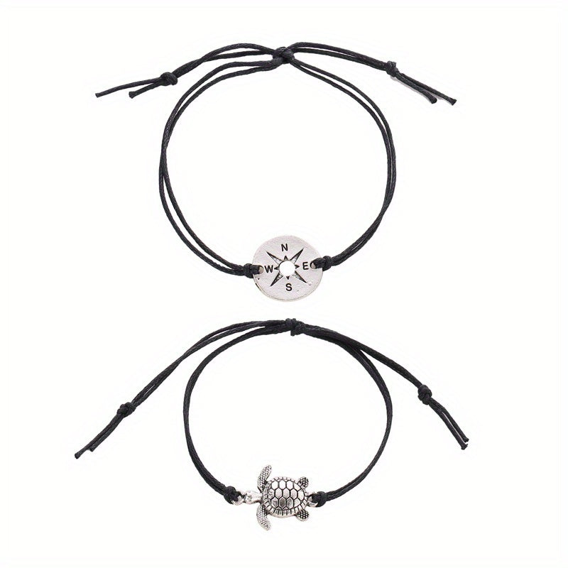 Embrace a bohemian style with this vintage silver turtle bracelet featuring a compass pendant. Perfect for men and women who love beach-inspired jewelry.