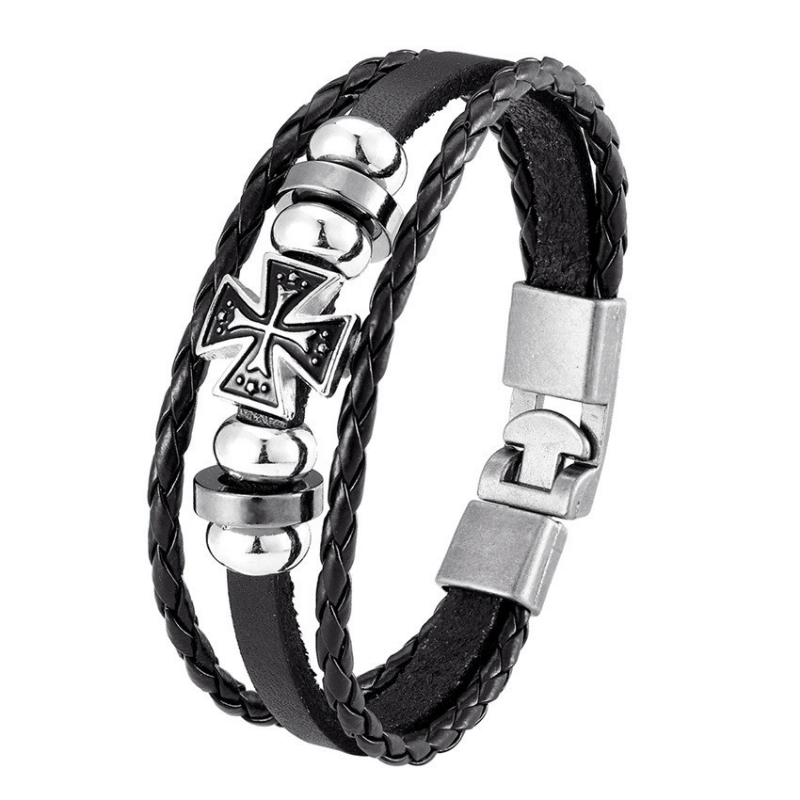 This vintage cross leather bracelet is a stylish addition to your punk-inspired look. The beaded accents add a unique touch to your outfit.