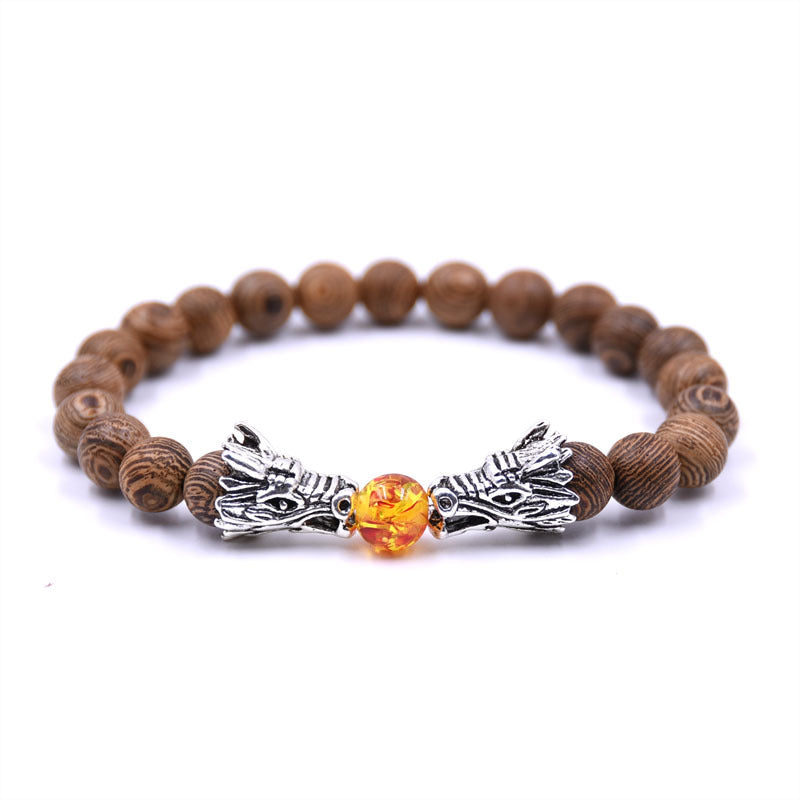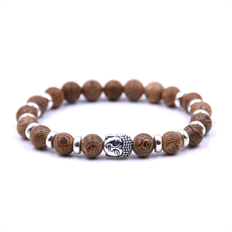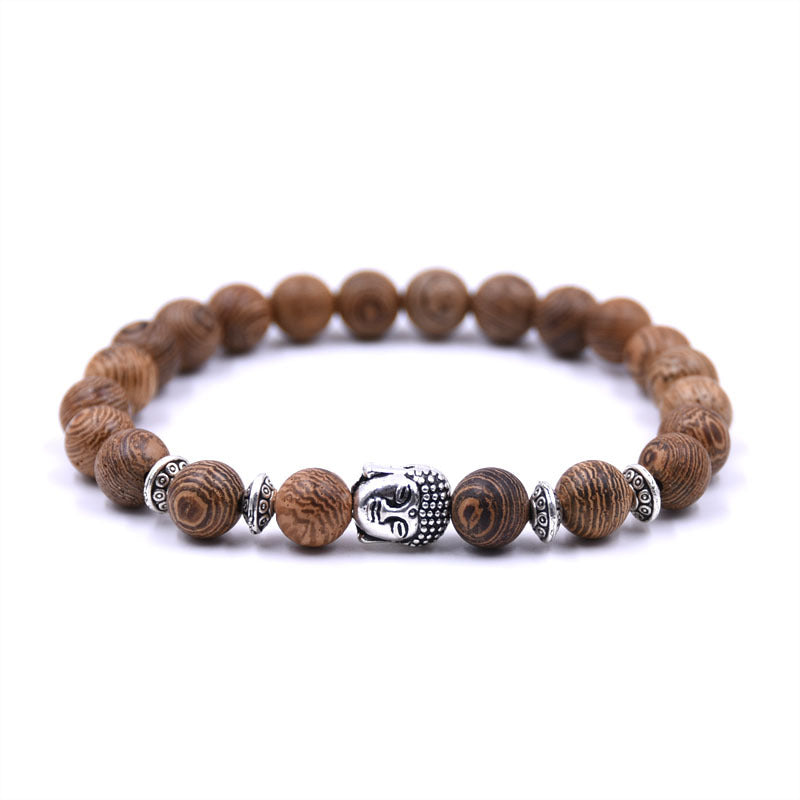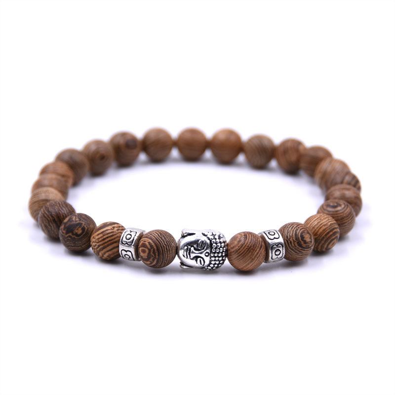 Vintage Men Bracelet Wood Beaded Buddha Elastic Bracelets