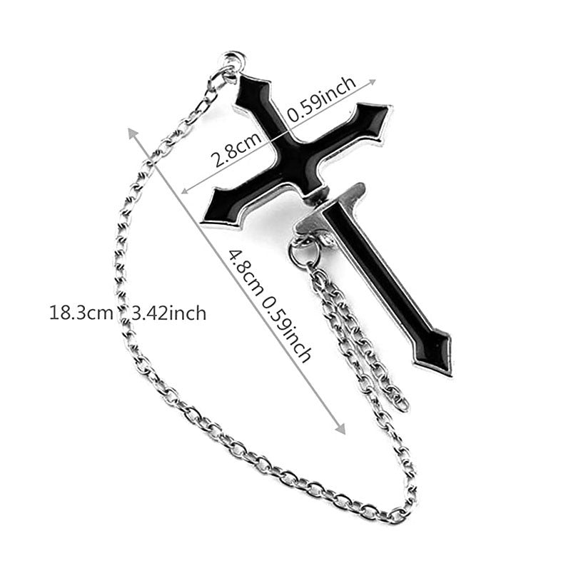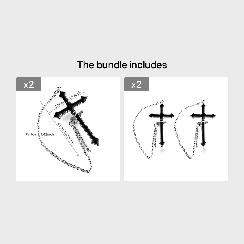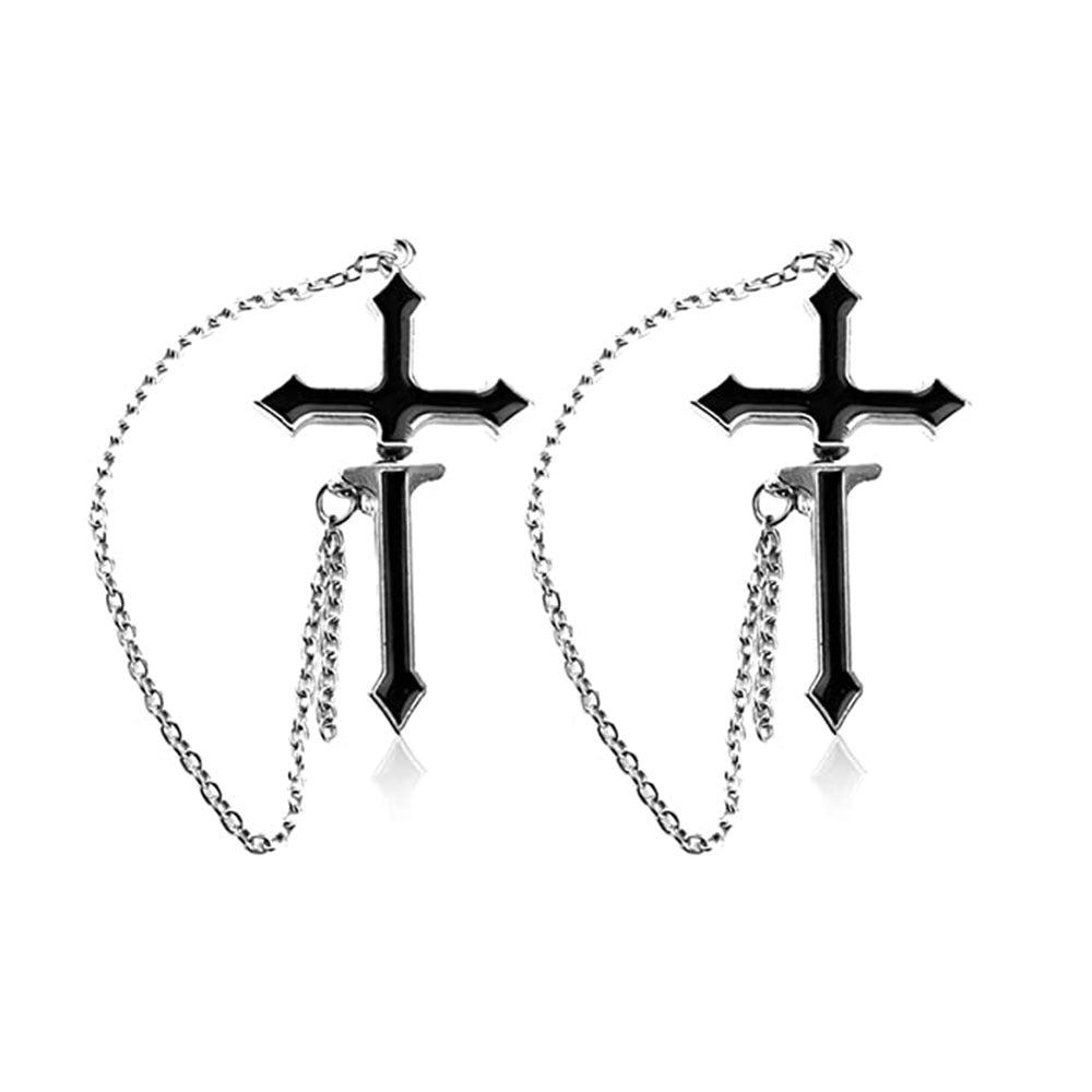 2pcs Cross Earrings Long Chain Zipper Punk Men