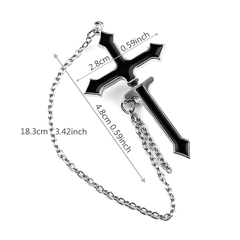 Add a touch of vintage and punk style to your party look with these cross earrings featuring a long chain and zipper design. Perfect for men who want to make a statement.