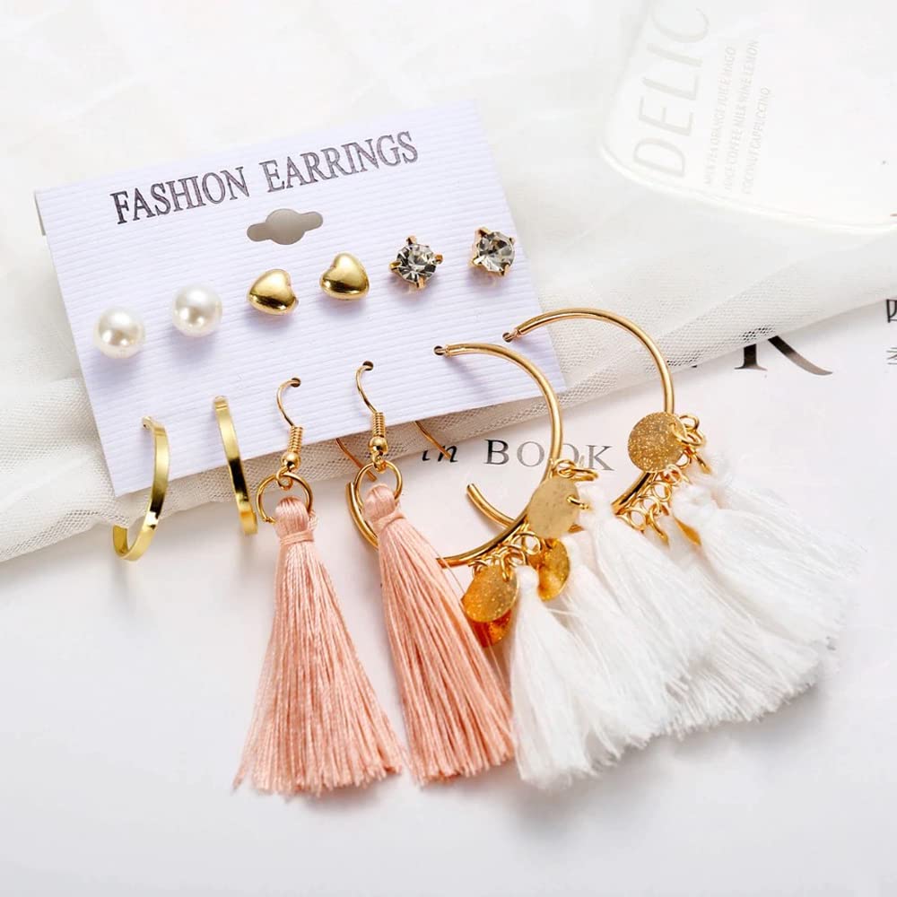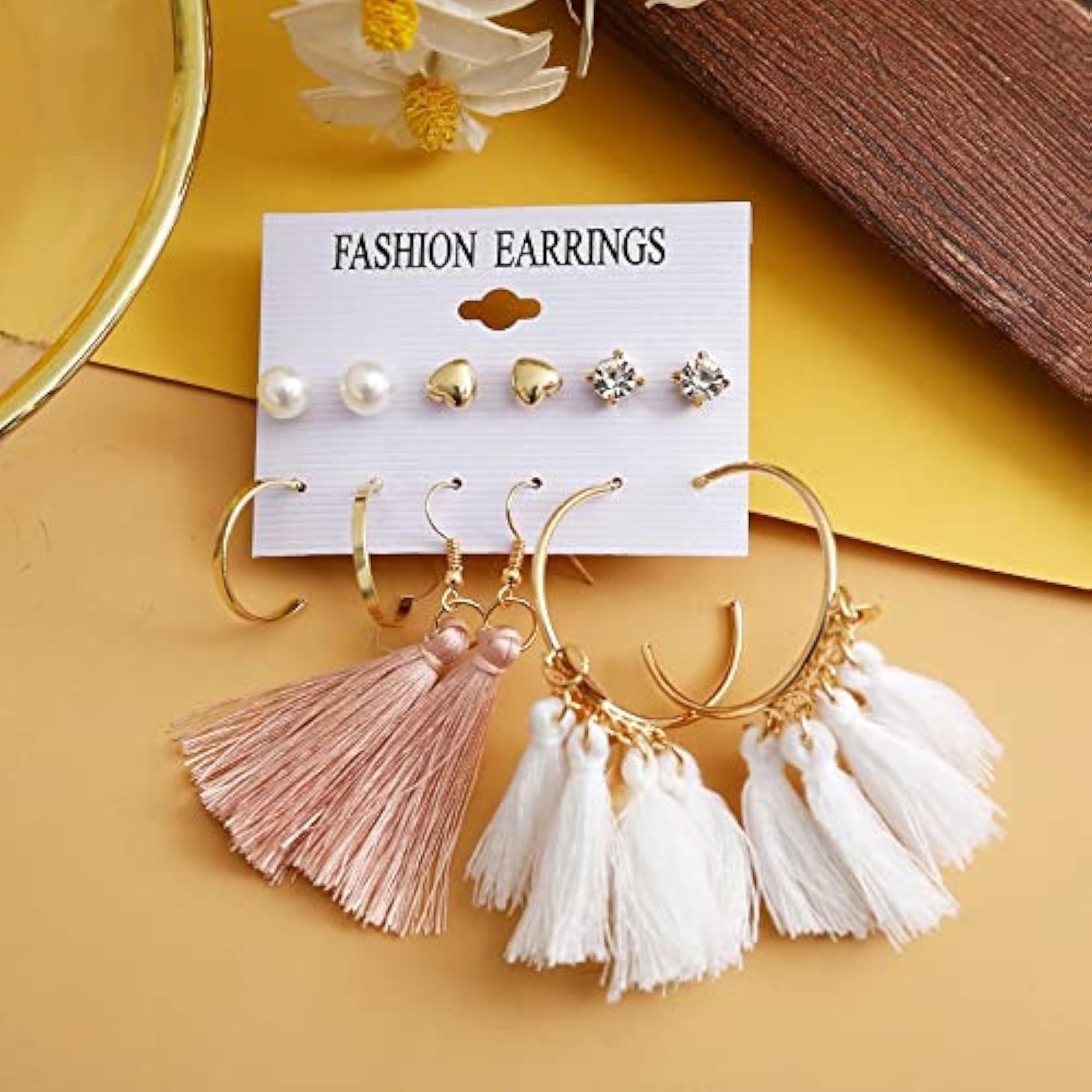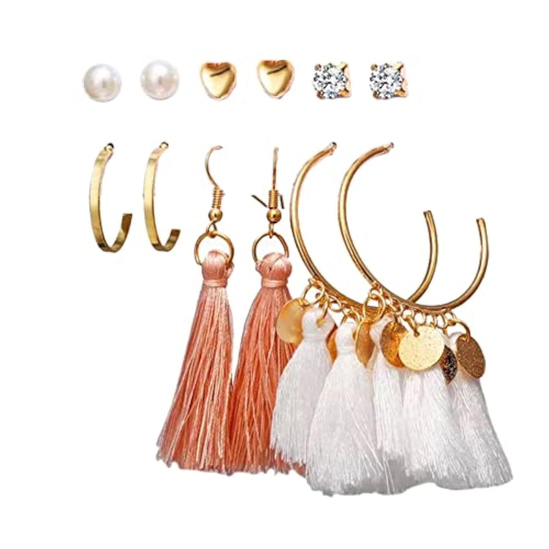 Get this stylish combo pack featuring 6 pairs of tassel base metal studs earrings in vibrant multicolour shades. Perfect for adding a pop of colour to your outfit.