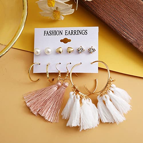 6 Pairs Combo Tassel Studs Earrings - Multicolour