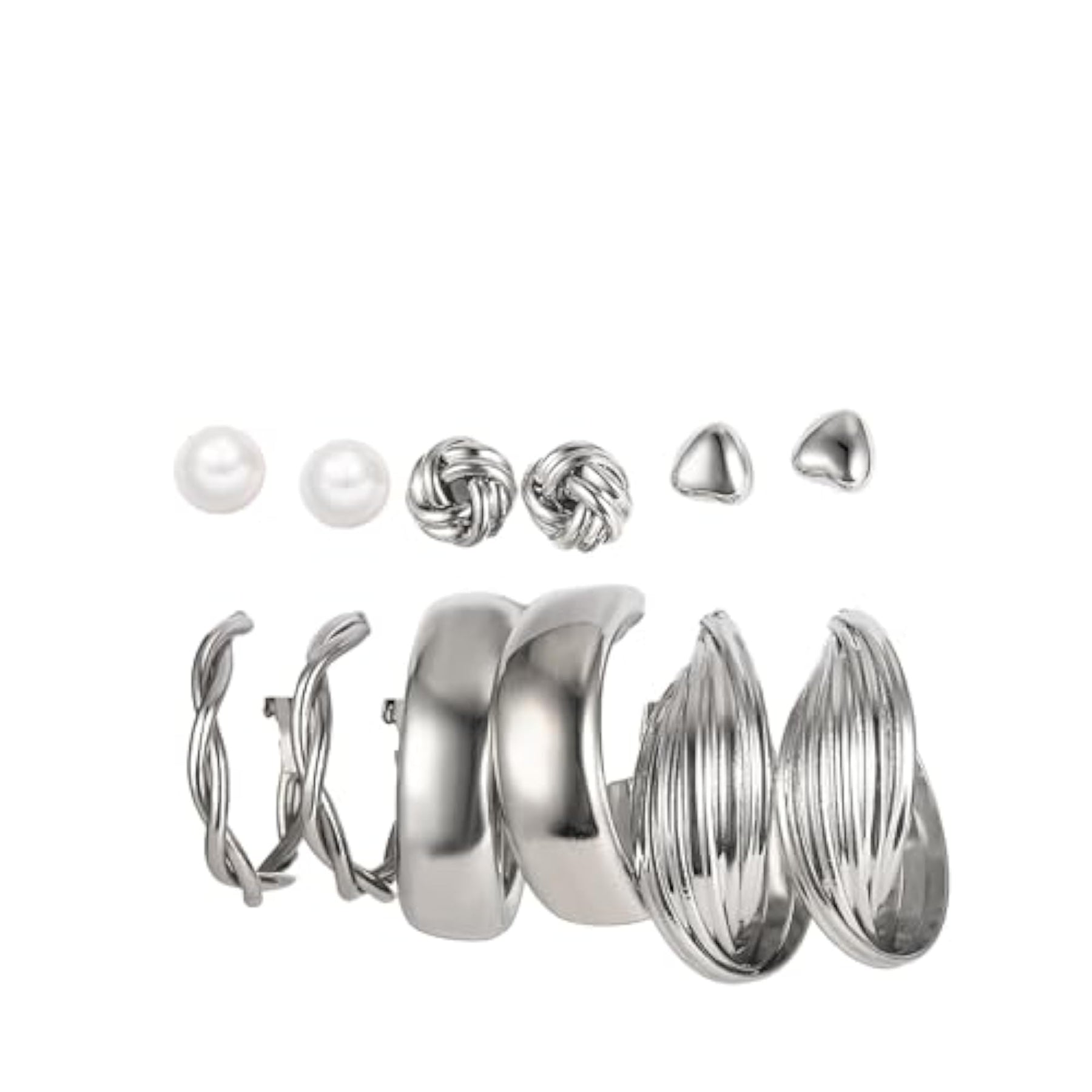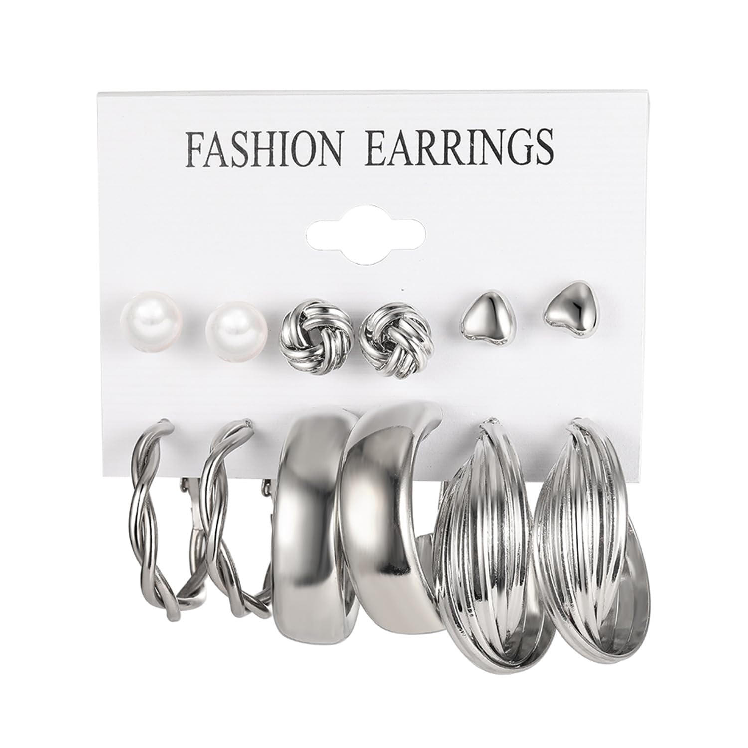 Get this set of 6 stylish stud earrings suitable for both men and women. Made with high-quality materials, these earrings add a touch of elegance to any outfit.
