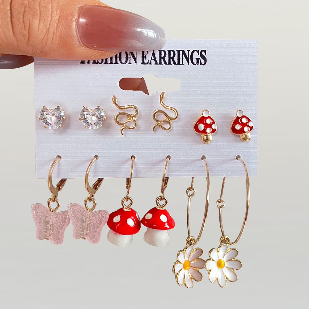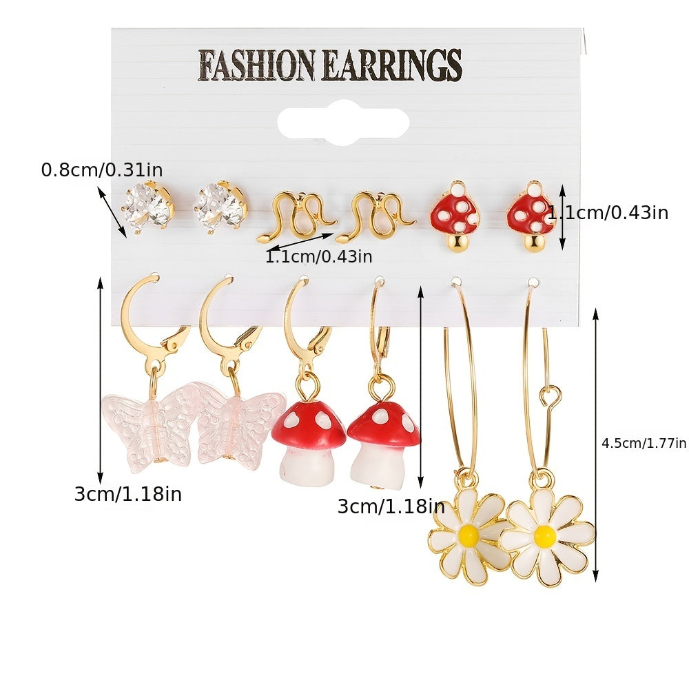 6 Pcs Earrings Kit, Flower Butterfly Mushroom Shape Ear Jewelry Women Girls